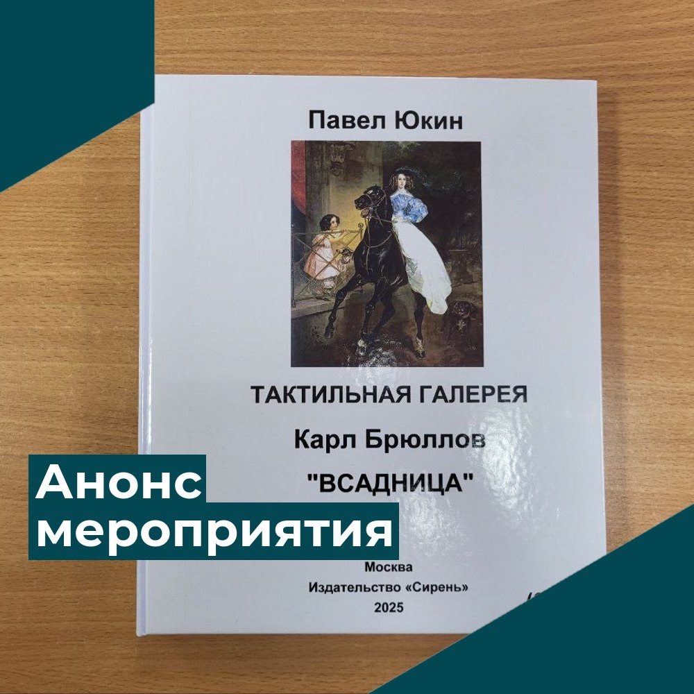 Встреча будет посвящена знаменитому полотну Карла Брюллова «Всадница». Вниманию участников будет представлено специальное тактильное издание картины, выпущенное издательством «Сирень».