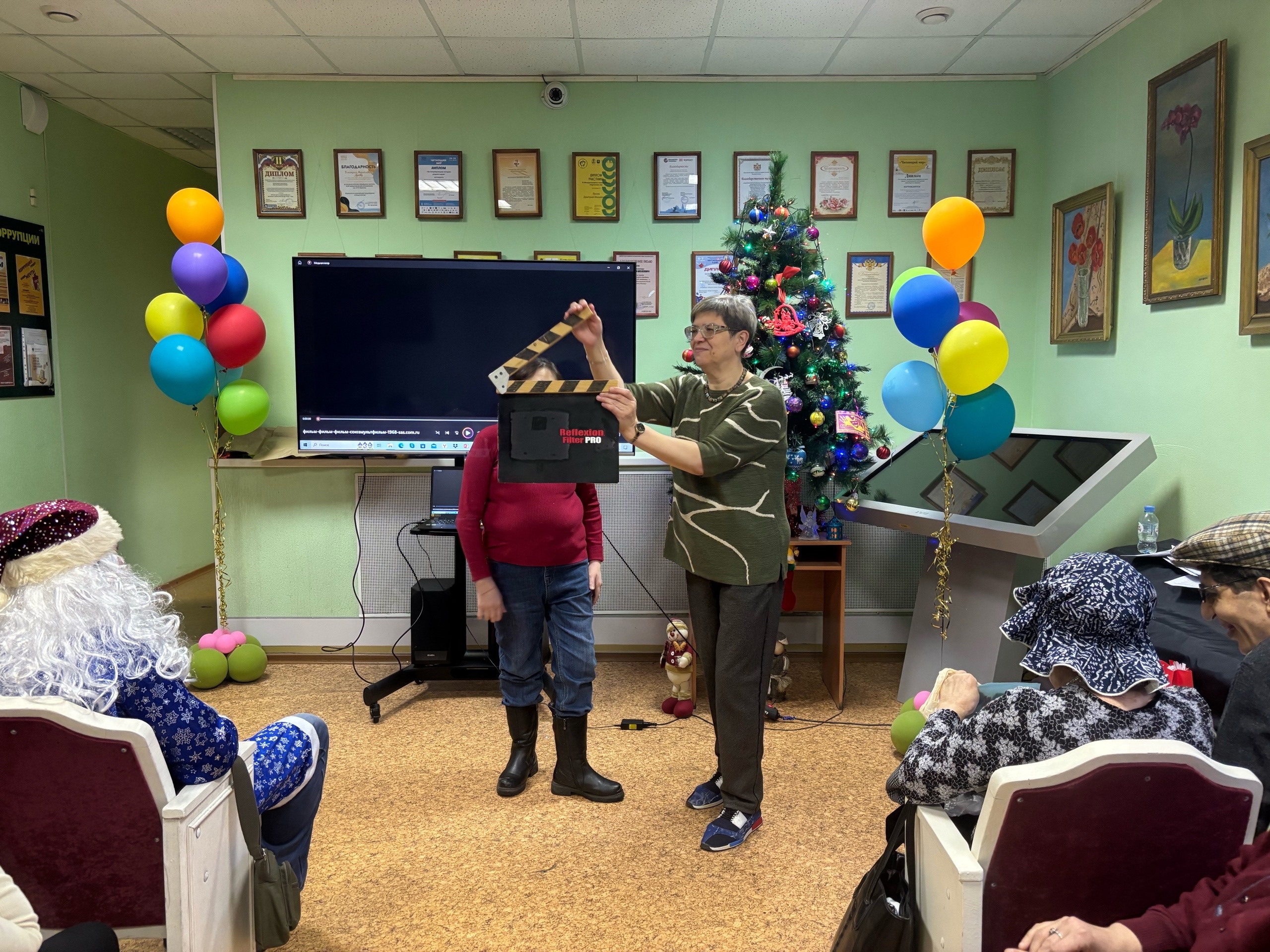 Программу продолжили весёлые игры и конкурсы на тему советского кино, которые доставили много удовольствия членам клуба. Завершилось мероприятие новогодними предсказаниями и просмотром комедии «Ничего не вижу, ничего не слышу».