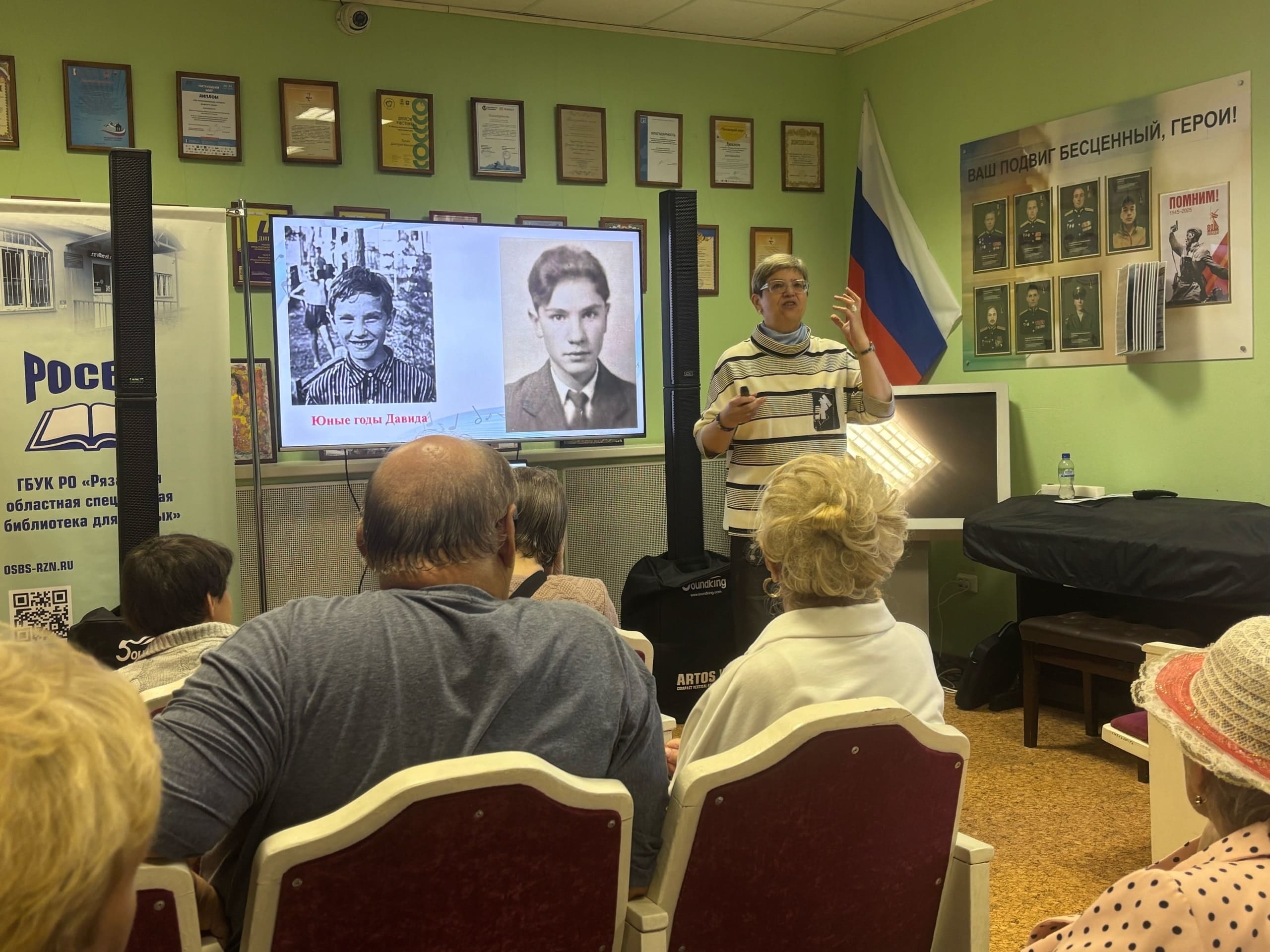 О жизни и творчестве композитора рассказала главный библиотекарь Регионального методического центра по работе с инвалидами Смирнова О.А. Рассказ сопровождался многочисленными видеозаписями самых популярных песен Тухманова.