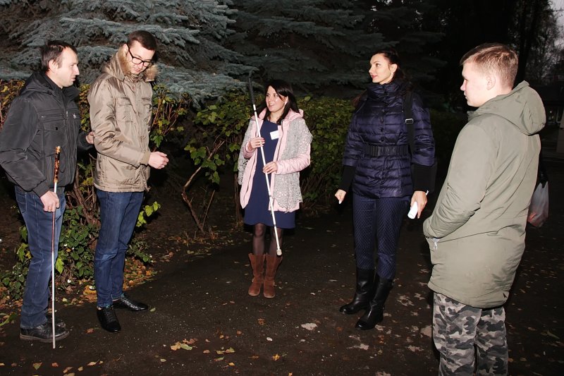 Участникам рассказали об истории и значении Международного дня слепых, затем объяснили правила игры и разделили на команды. В ходе квеста участники побывали на 7 станциях ("Белая трость", "Волшебное шеститочие", "Мобильный помощник", "В мире ароматов", "Звук вокруг", "Окружающий мир", "Копейка рубль бережет") и выполнили простые задания с завязанными глазами, используя при этом тактильные, слуховые и обонятельные ощущения.