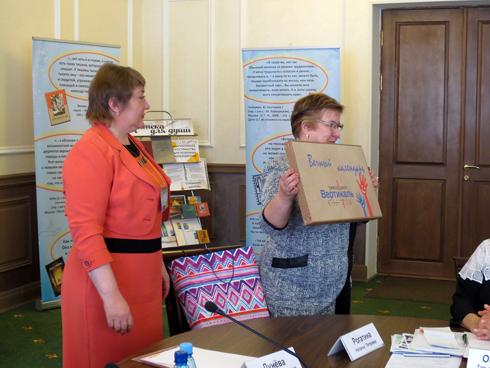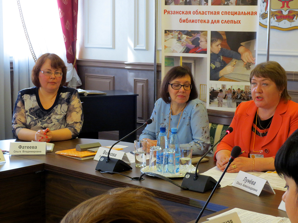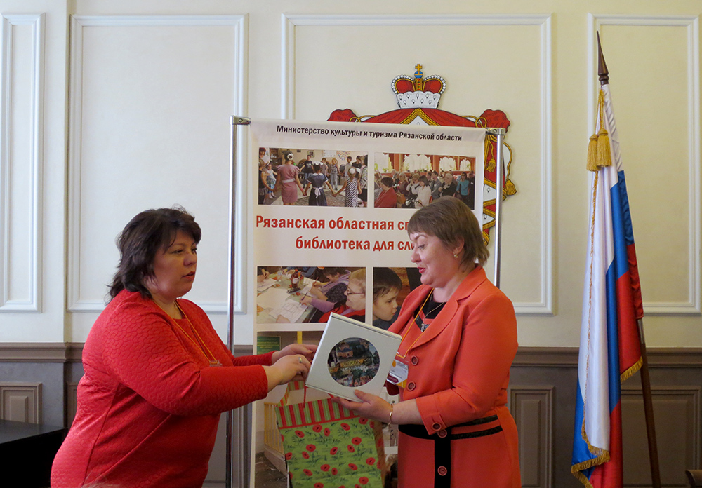 - «Взаимодействие специальных и общедоступных библиотек для повышения качества обслуживания особых категорий пользователей. Опыт реализации совместных образовательных проектов» (Винокурова Светлана Алексеевна, заместитель директора по развитию Рязанской областной универсальной научной библиотеки им. Горького);