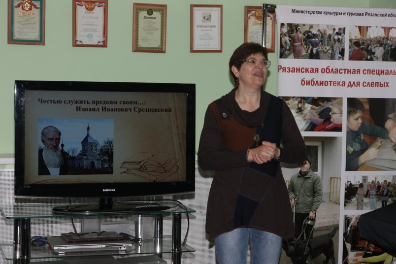 13 июня 2017 года исполнилось 205 лет со дня рождения уроженца Рязанского края, выдающегося филолога-слависта, этнографа Измаила Ивановича Срезневского. Этому событию была посвящена медиалекция «Честью служить предкам своим», которую прослушали читатели Рязанской областной специальной библиотеки для слепых.