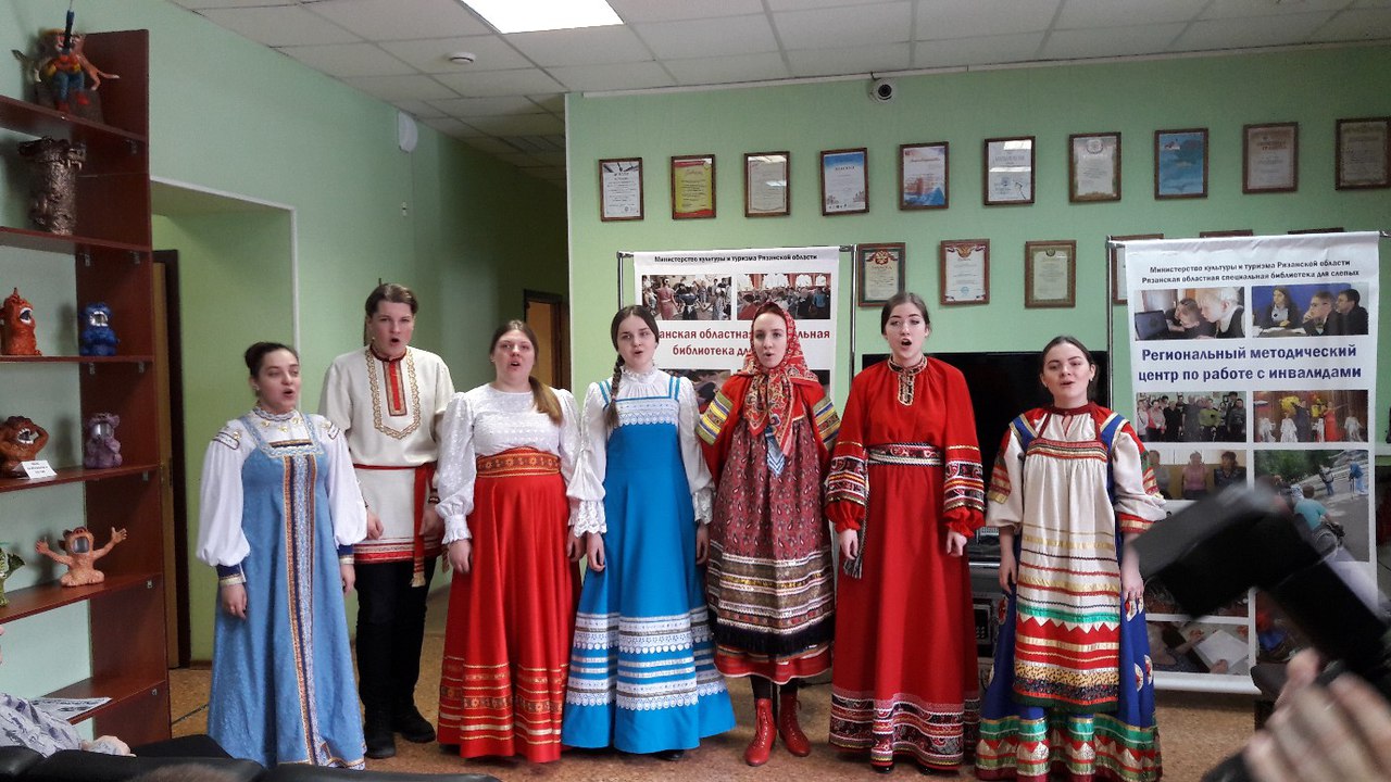 14 марта 2018 года в Рязанской областной специальной библиотеке для слепых прошел концерт, посвященный 240-летию образования Рязанской губернии. Вокальная группа народных хормейстеров музыкального колледжа им. Г. и А. Пироговых исполнила русские народные песни «По мужеченку», «Со родимой стороны», «При дорожке калинушка растет», «Баусень» (колядка), «Во поле туман», «Ой, все кумушки домой» и другие.