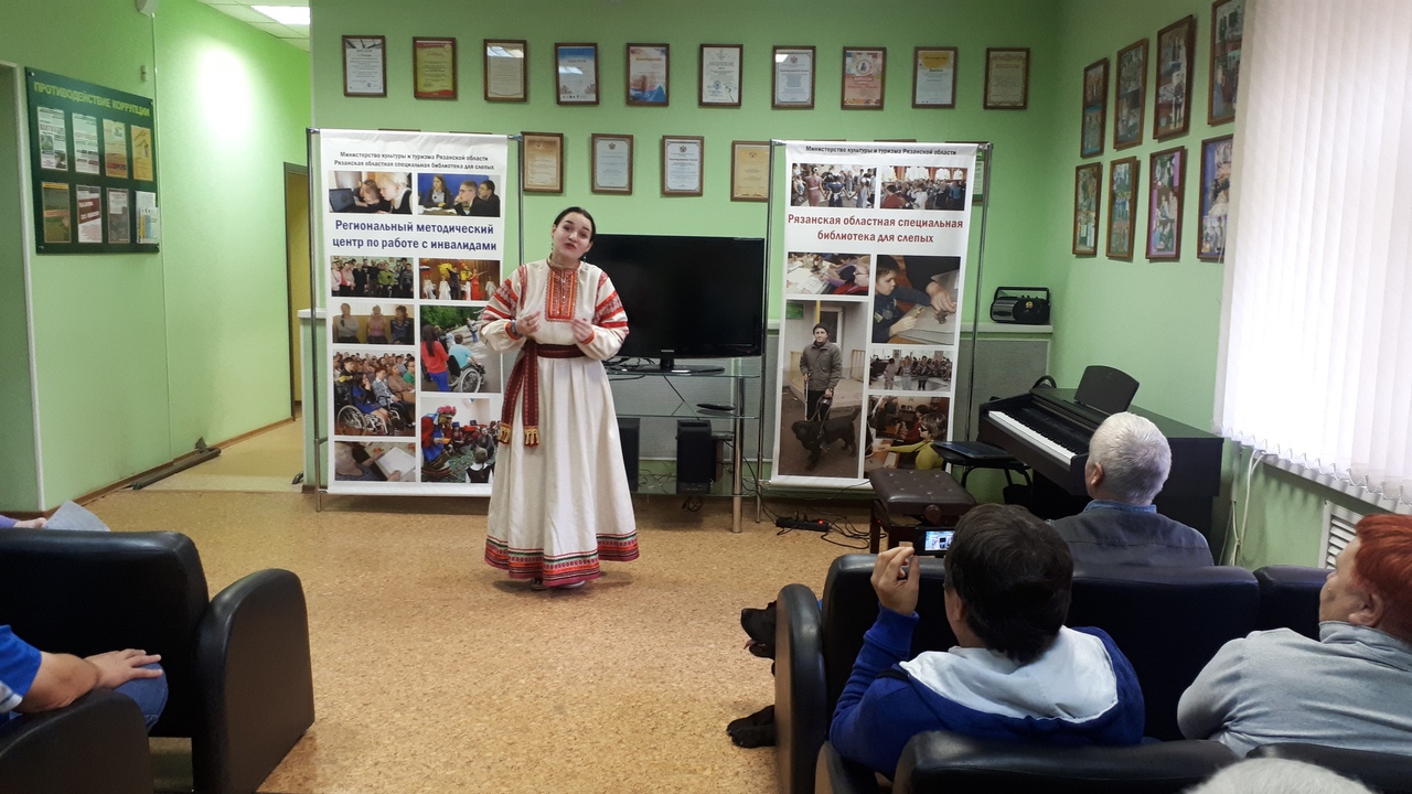 Перед незрячими и слабовидящими читателями библиотеки выступили студенты Рязанского музыкального колледжа имени Г. и А. Пироговых. М. Кузнецова прочитала стихотворение М.Ю. Лермонтова «Молитва», в исполнении трио А. Белявской, Н. Вайн, О. Феофановой прозвучала песня на стихи Лермонтова – «Колыбельная». Также учащиеся колледжа исполнили музыкальные произведения на фортепиано, флейте, балалайке, домре.