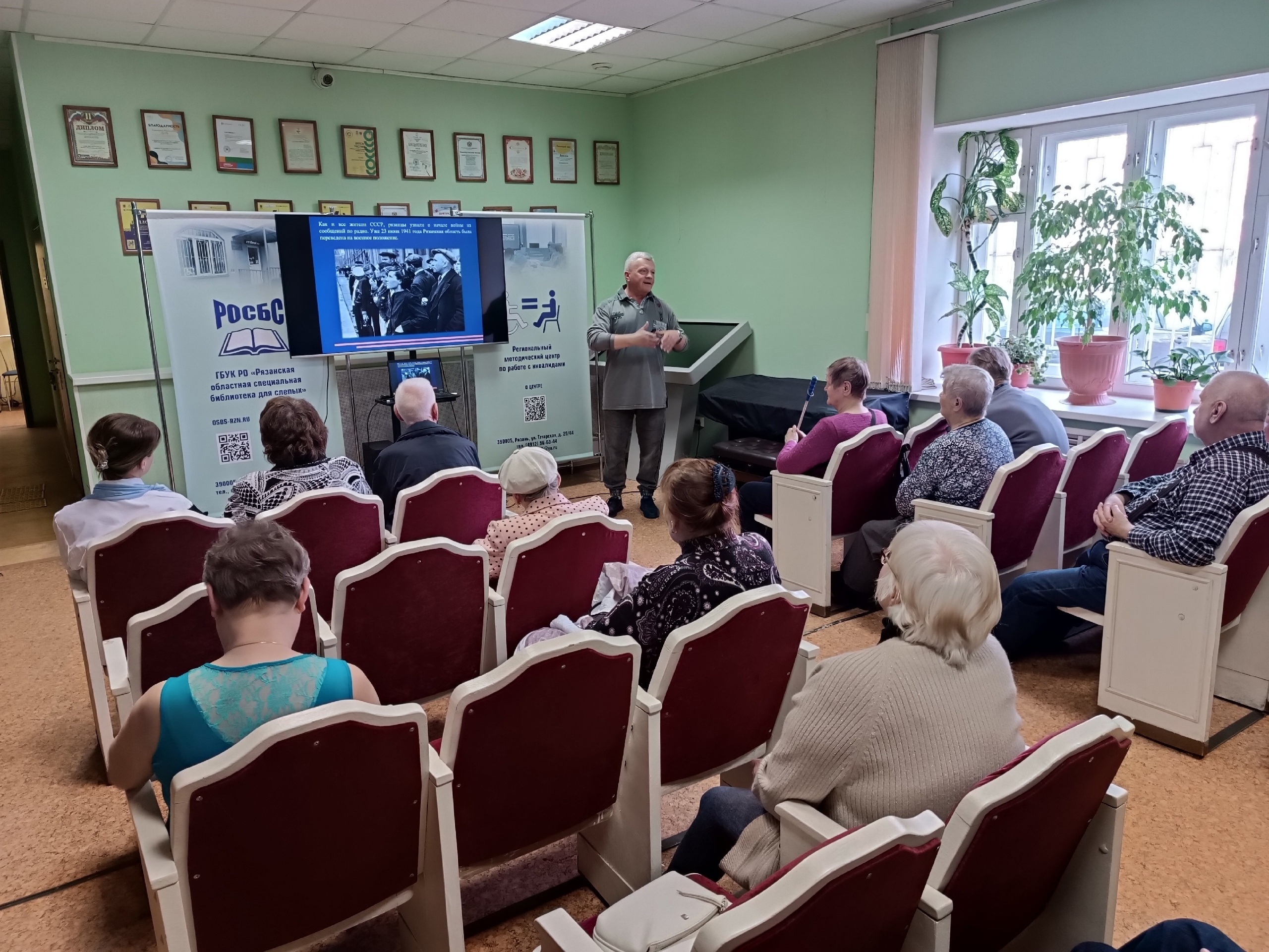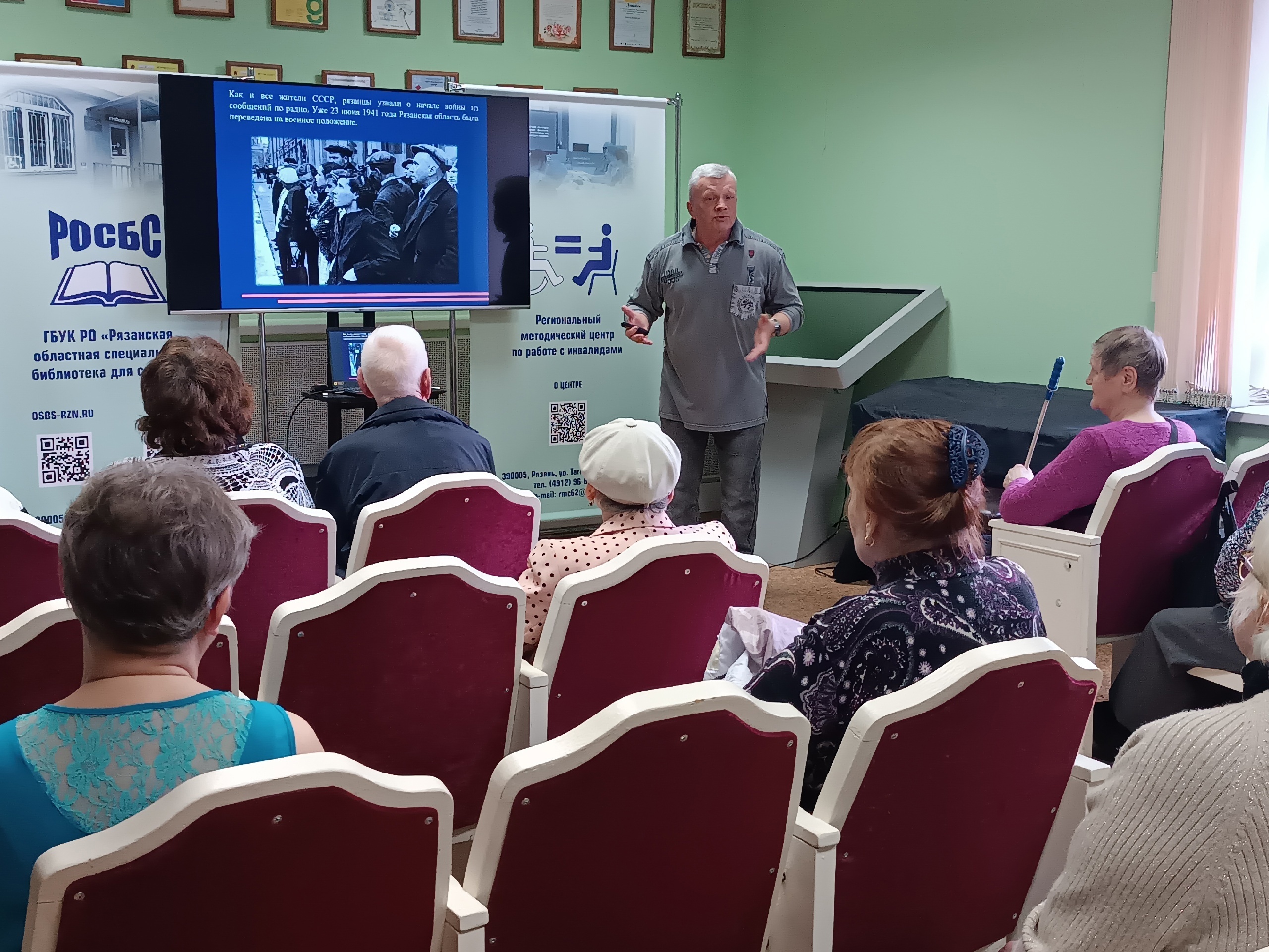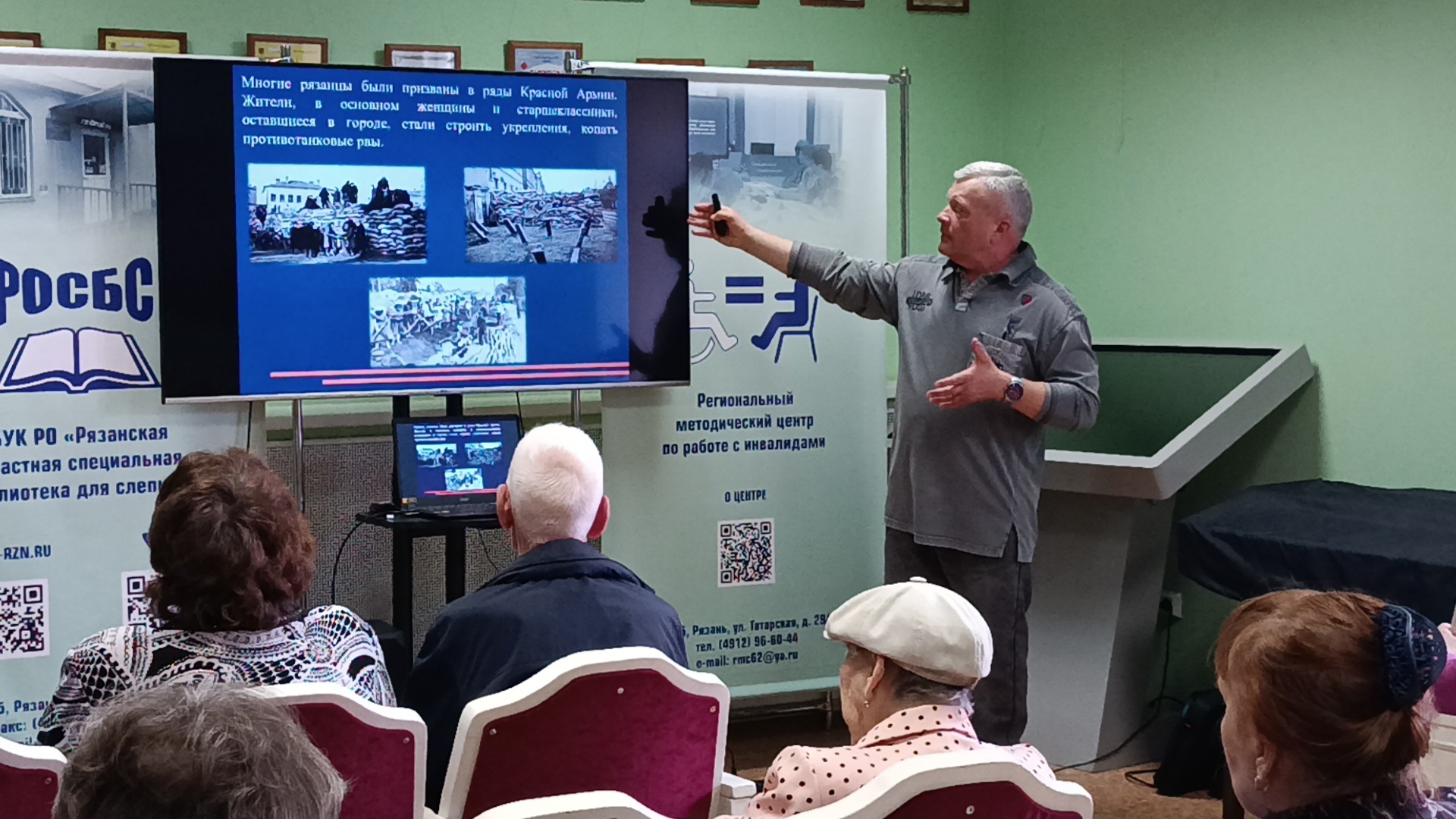 16 апреля 2024 года в Рязанской областной специальной библиотеке для слепых с лекцией «Рязань прифронтовая» из цикла «Рязань героическая» выступил главный методист Рязанского музея путешественников Завишо Петр Анатольевич.