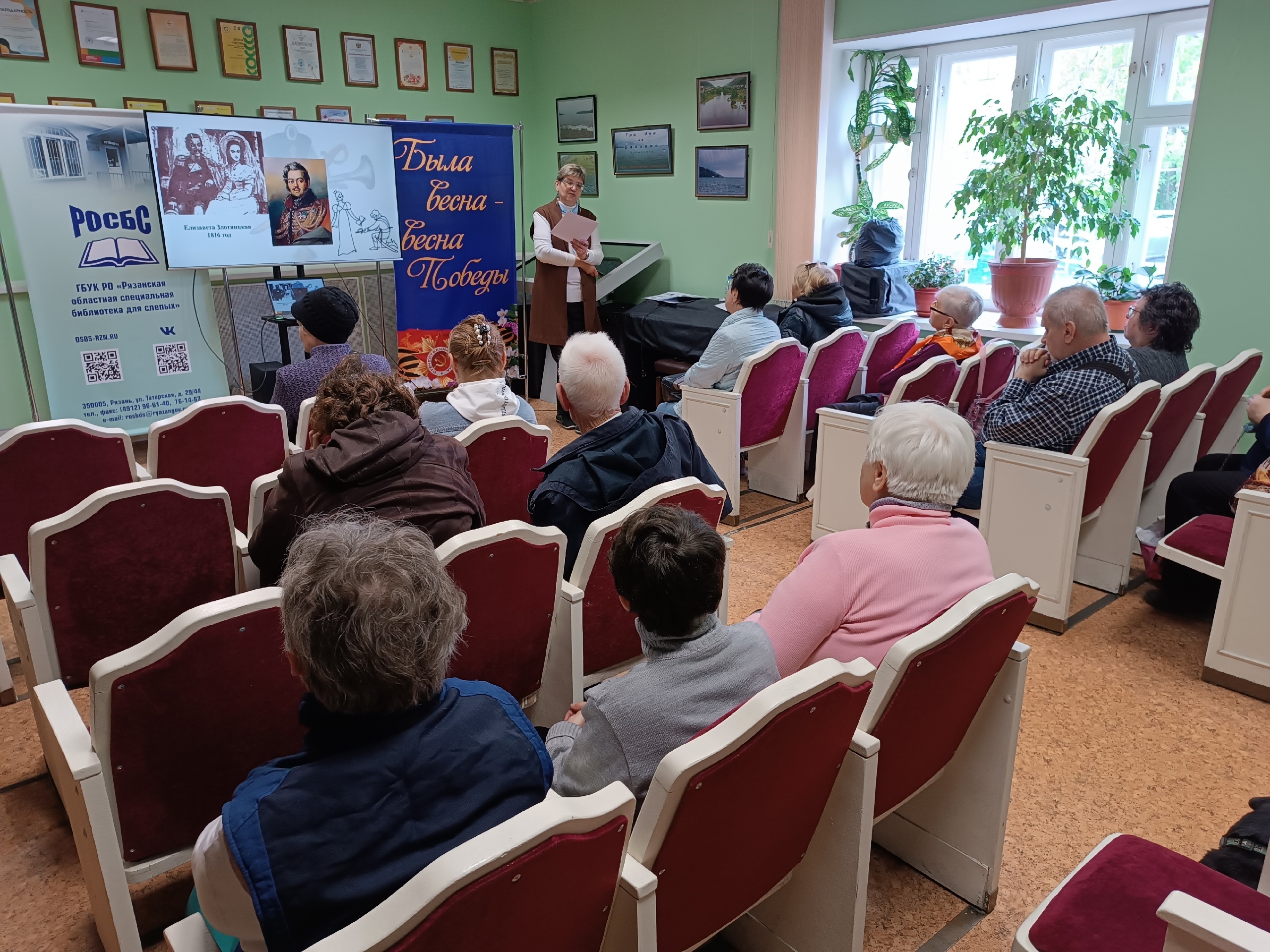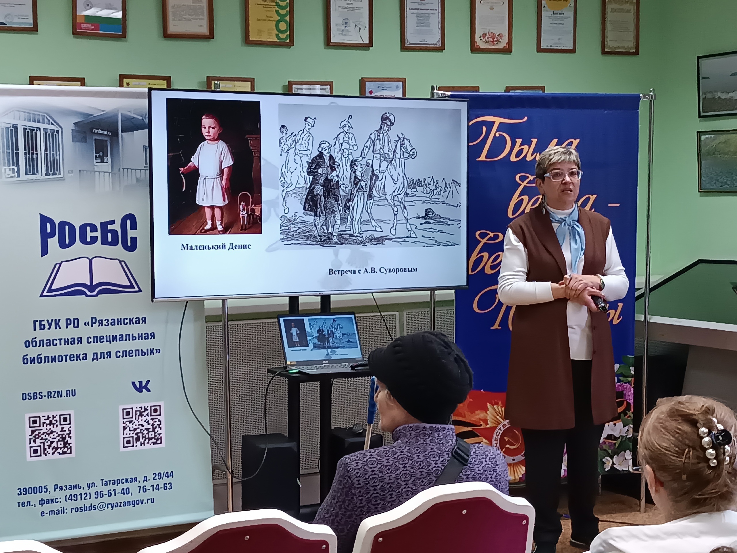 Главный библиотекарь Регионального методического центра по работе с инвалидами Смирнова О.А. рассказала не только о военных подвигах воина-партизана, его не простой карьере, но и о литературном творчестве – гусарских и лирических циклах стихов. Очень интересной для читателей стала информация о женщинах в жизни воина-поэта, вдохновительницах его прекрасных поэтических произведений.