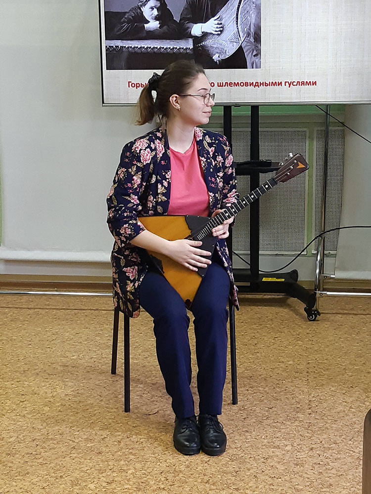 Открыла встречу рассказом об истории гуслей главный библиотекарь Смирнова О.А., слушатели узнали об интересных исторических фактах, касающихся этого инструмента, отличии яровчатых от звончатых гуслей и многое другое.