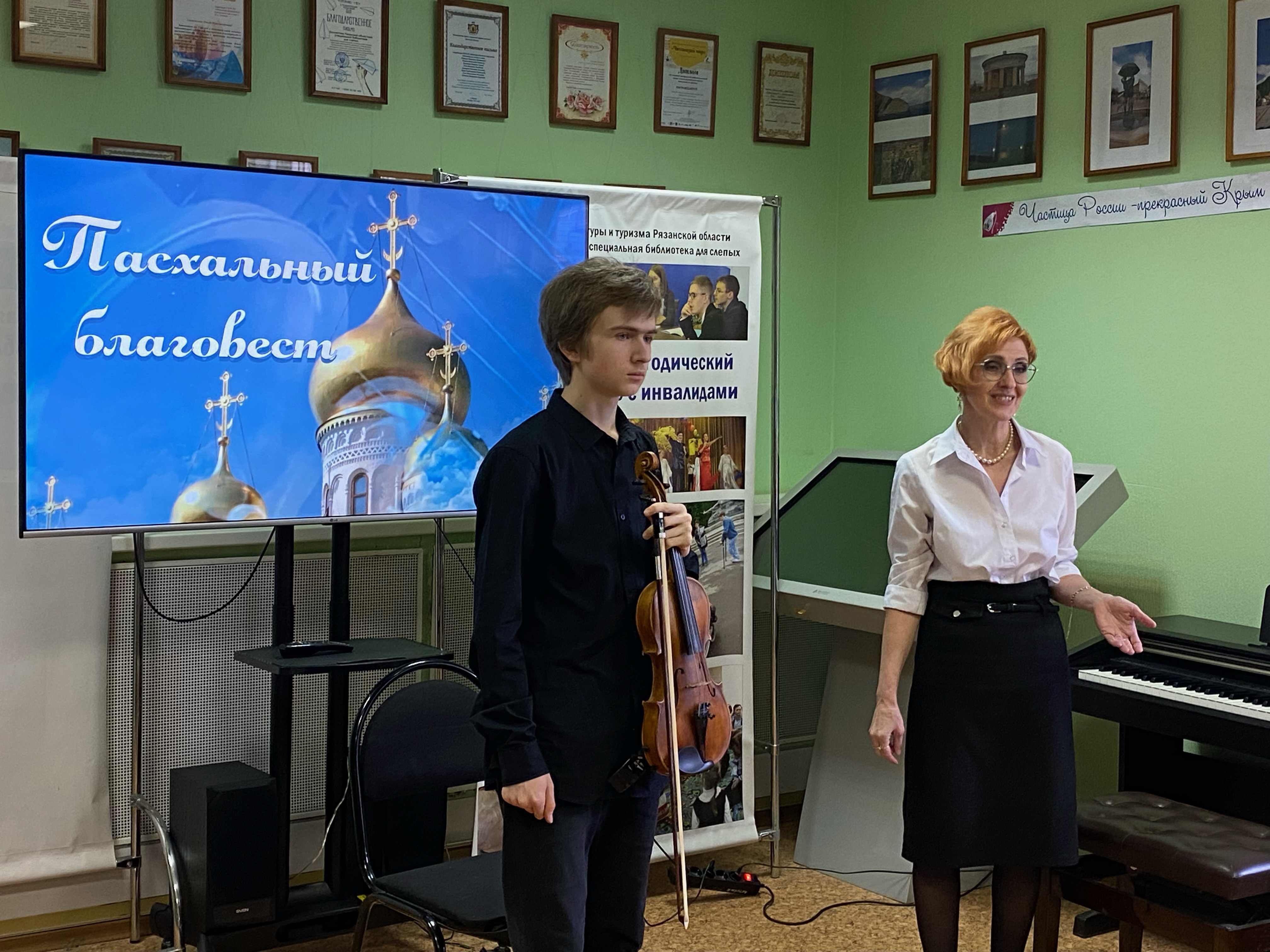 18 апреля 2023 года в актовом зале Рязанской областной специальной библиотеки для слепых в рамках музыкальной гостиной «Там, где живет музыка» прошёл праздничный концерт ко дню Светлой Пасхи «Пасхальный благовест» студентов Рязанского музыкального колледжа имени Г. и А. Пироговых.
