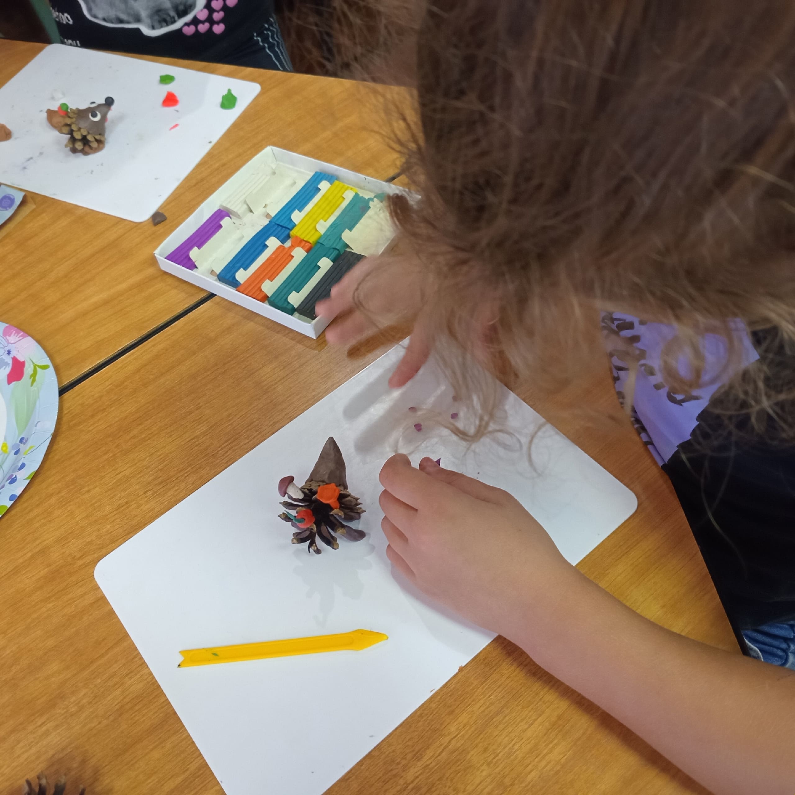 20 сентября 2025 года в детском отделе Рязанской областной специальной библиотеки для слепых состоялось занятие кружка «Умелые ручки» на тему «Поделка из шишек. Ёжик».