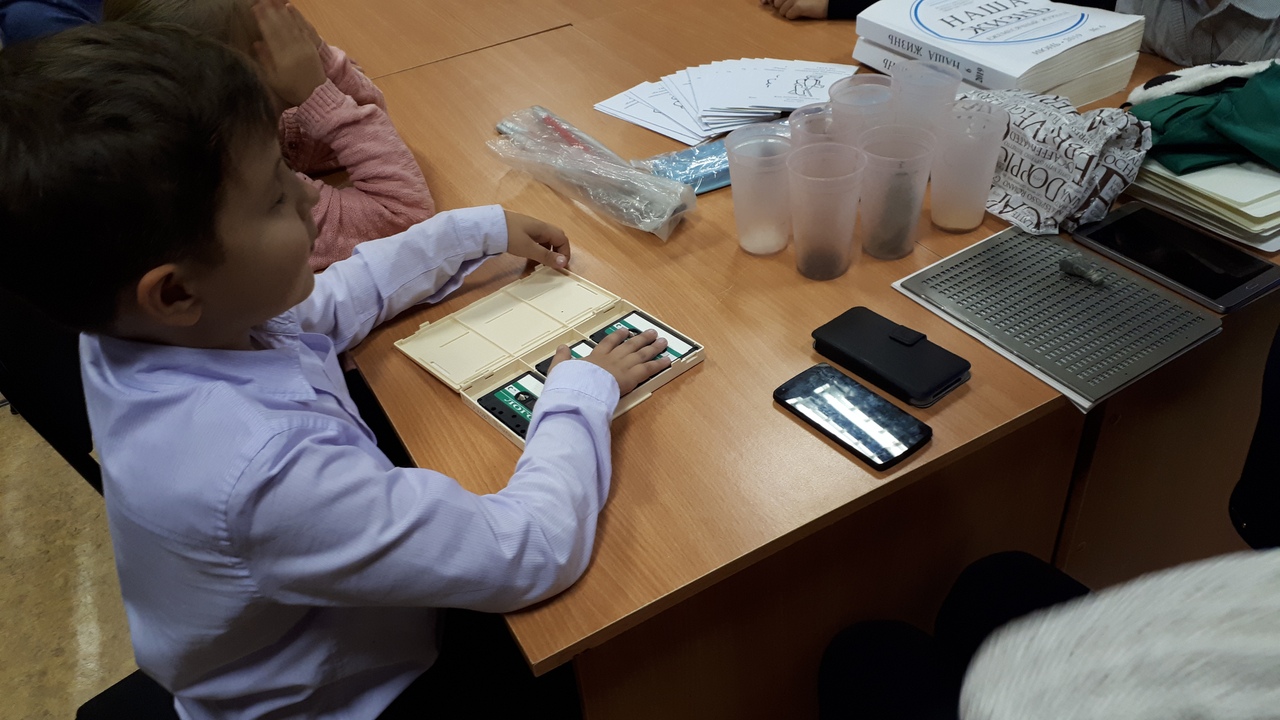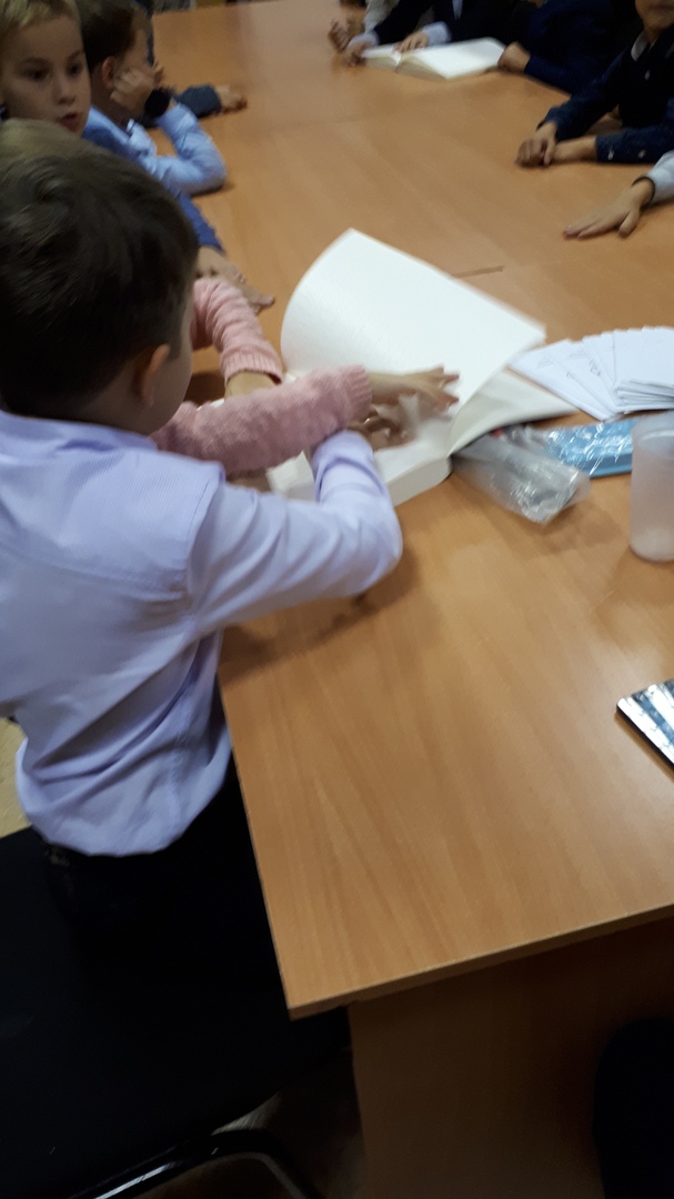 С 13.00 в библиотеке начала работу интерактивная площадка «Мир на ощупь», с помощью которой ученики младших класса гимназии №5 и средней школы № 16 смогли понять, как ощущает мир человек с ограничениями здоровья по зрению. Узнали, кто такой Луи Брайль, увидели специальный издания для слепых. С закрытыми глазами и тростью преодолевали небольшой участок дороги, а также угадывали запахи и рельефные изображения.