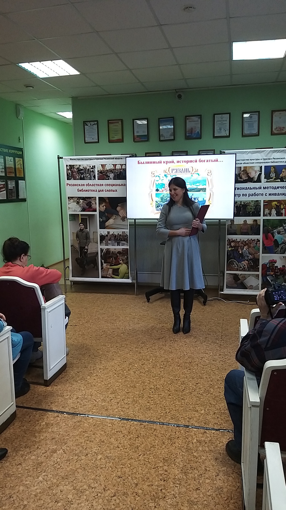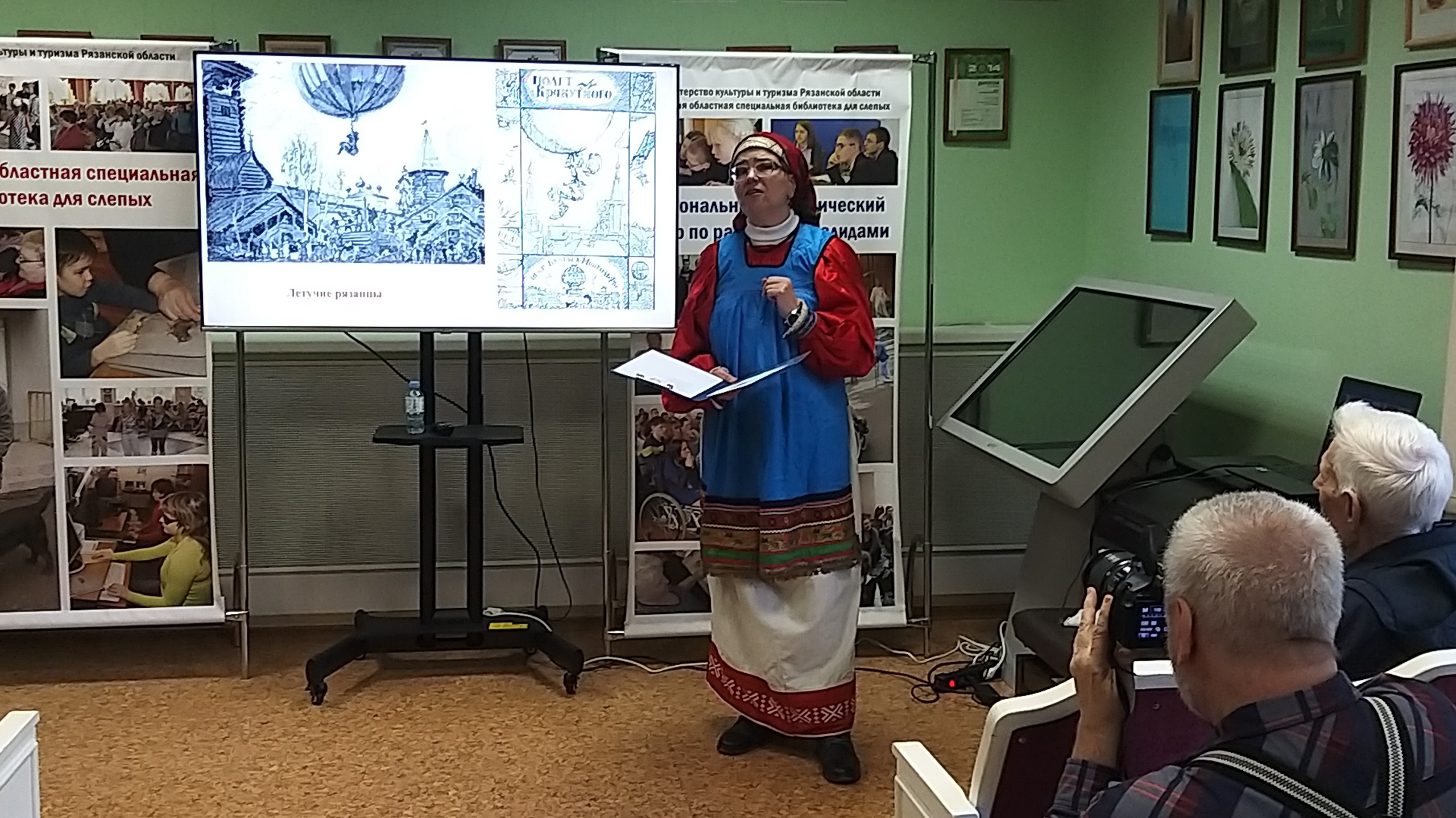 Продолжилось мероприятие медиалекцией, рассказывающей об интересных фактах и событиях из истории Рязанского края, «Былинный край с историей богатой...», выступила главный библиотекарь Регионального методического центра по работе с инвалидами Смирнова О.А.