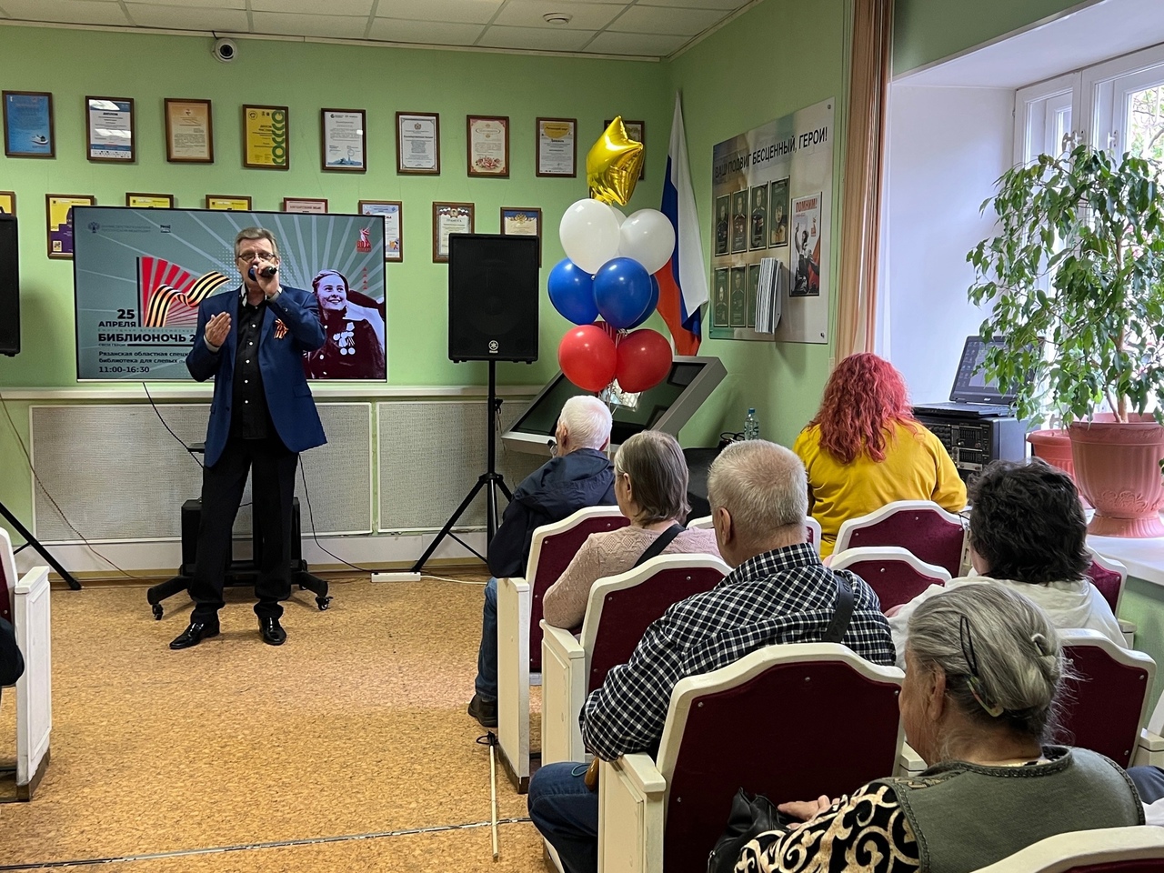 25 апреля 2025 года в библиотеке для слепых распахнулись двери для гостей Всероссийской акции «Библионочь–2025». Открытие ознаменовал проникновенный концерт Дмитрия Лунева «Помнит сердце, не забудет никогда». Талантливый музыкант, певец и аранжировщик, исполняя песни военных лет, создал незабываемую атмосферу, наполненную глубокими эмоциями и благодарной памятью. Каждая нота, каждое слово резонировали в сердцах слушателей, пробуждая чувства гордости и сопереживания, напоминая о бессмертном подвиге героев Великой Отечественной войны. Искренность и мастерство Дмитрия Лунева, его трепетное отношение к теме задали высокий духовный тон всему мероприятию, обещая гостям Библионочи день, полный впечатлений и размышлений.