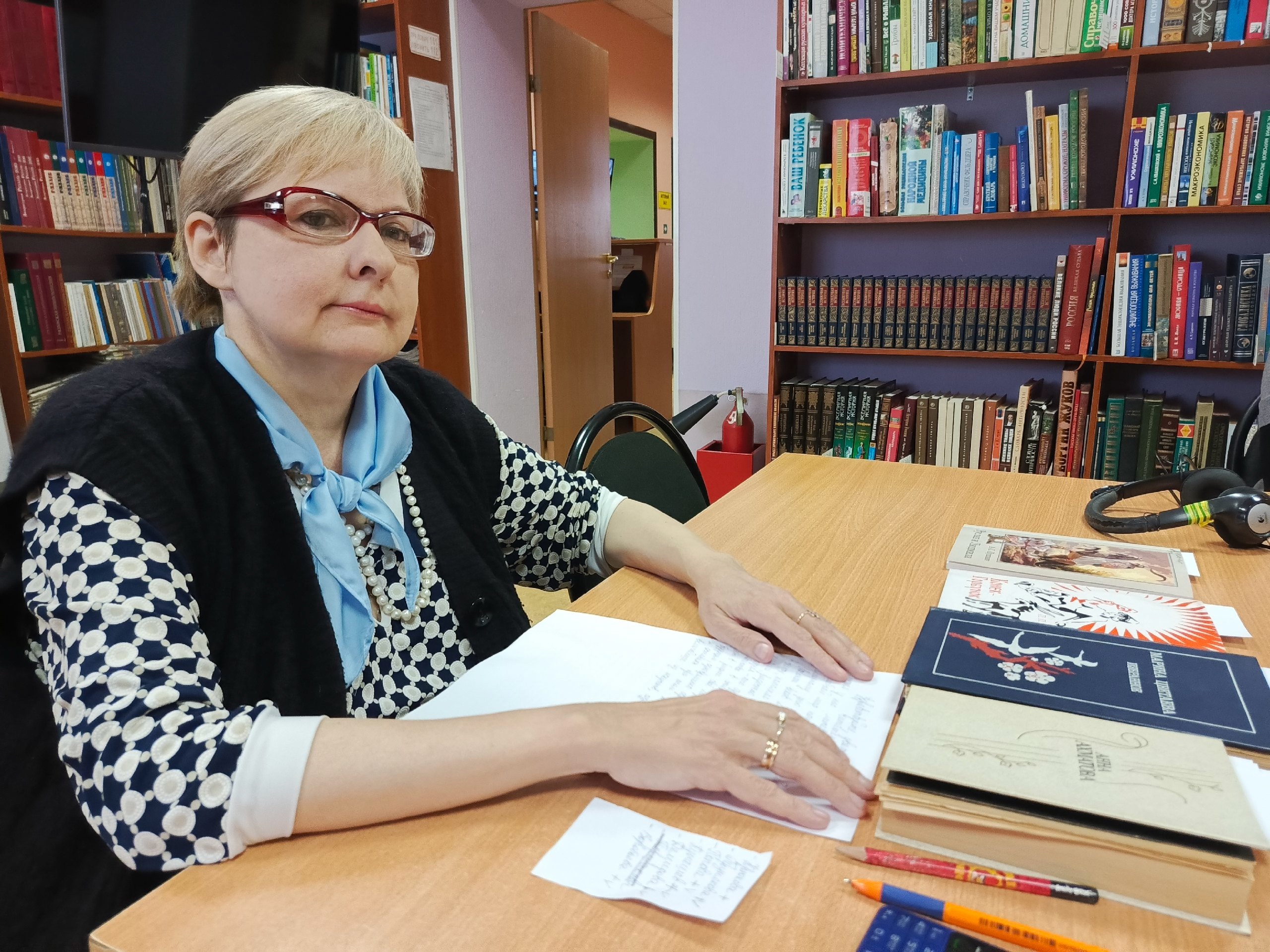 Ведущая мероприятия Екатерина Васильевна Наумова рассказала об истории развития поэзии у разных народов, особое внимание уделялось русской поэзии.