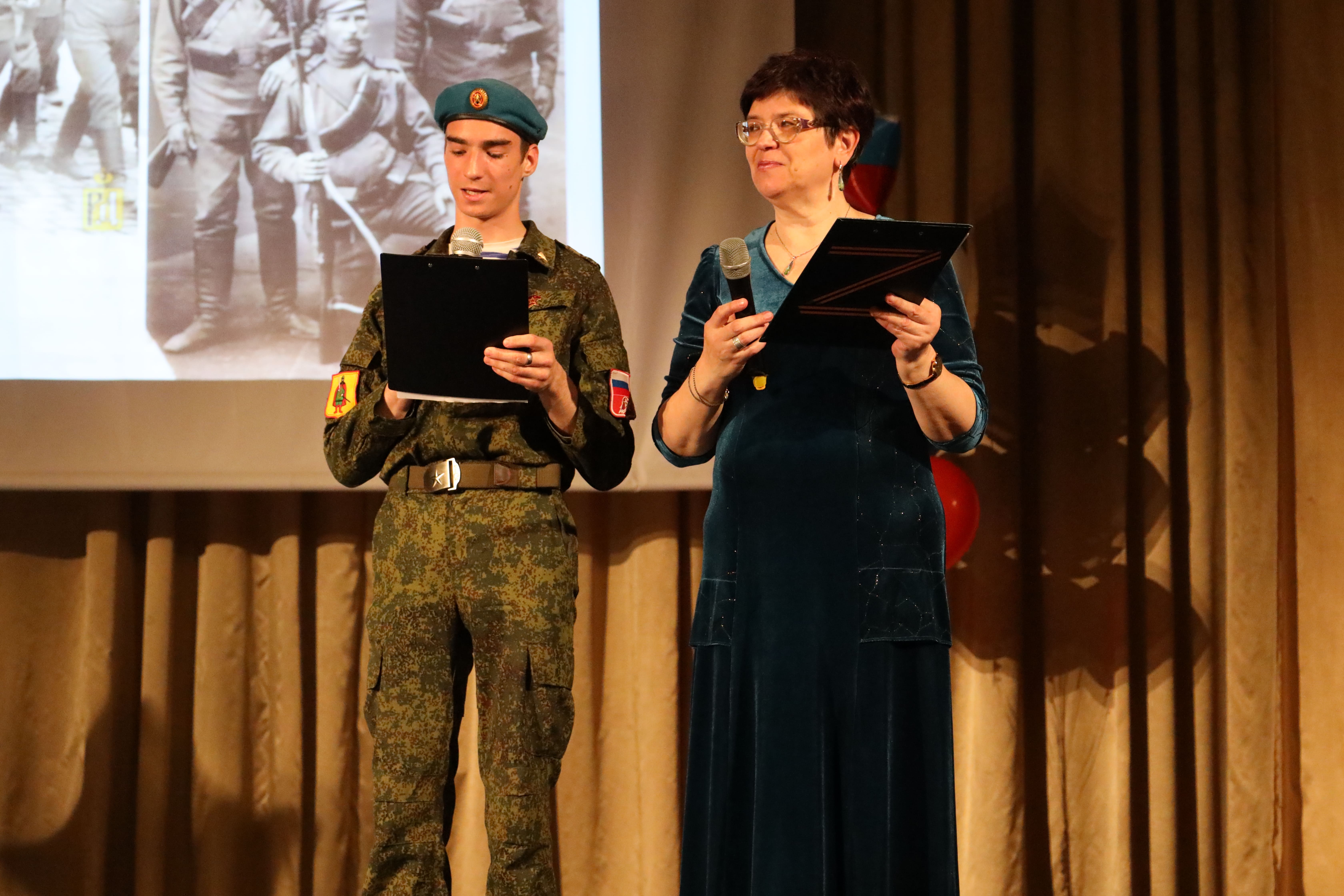 Традиционно в проведении программы на сцене и в зале помогали кадеты инклюзивного военно-патриотического клуба «Десантное братство».