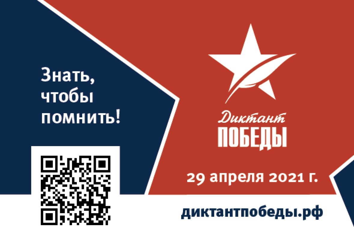 29 апреля 2021 года с 12.00 Международный исторический диктант на тему событий Великой Отечественной войны – «Диктант Победы»Афиша