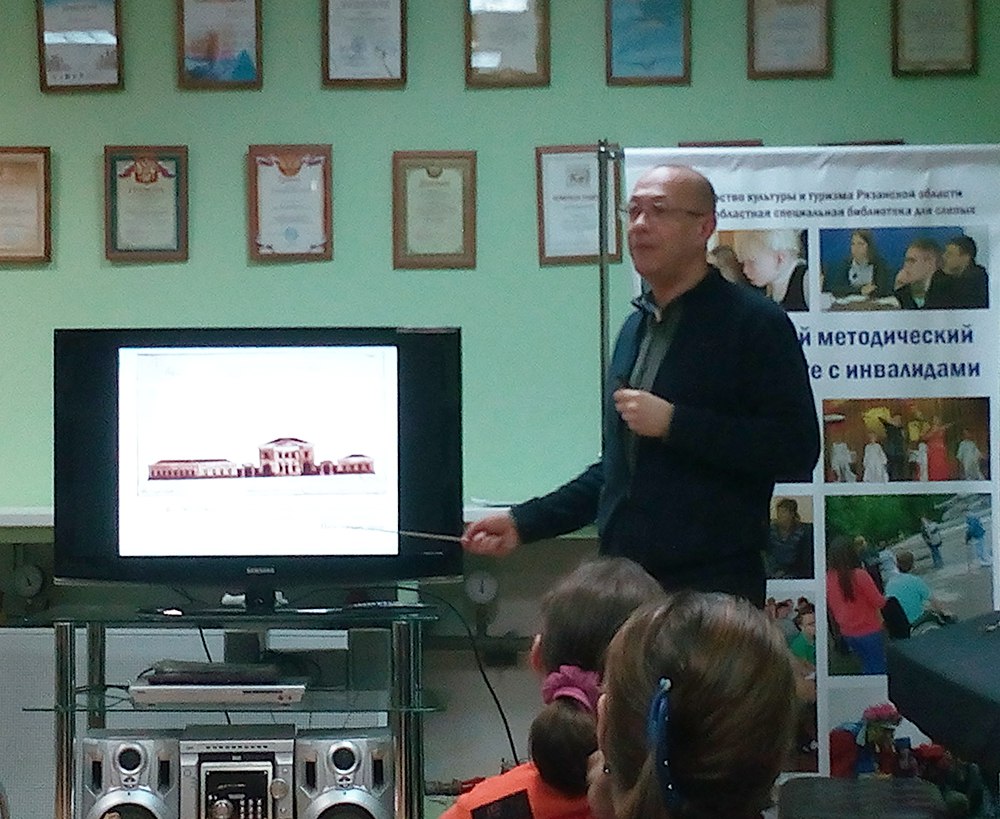 29 ноября 2017 года в клубе общения «Диалог на равных» Рязанской областной специальной библиотеки для слепых состоялась встреча с замечательным человеком – знатоком истории и архитектуры Рязани, кандидатом исторических наук, заместителем директора Государственного архива Рязанской области по научно-методической работе Д.Ю. Филипповым. Дмитрий Юрьевич продолжил знакомить членов клуба с уникальными документами и фактами Рязанской истории.