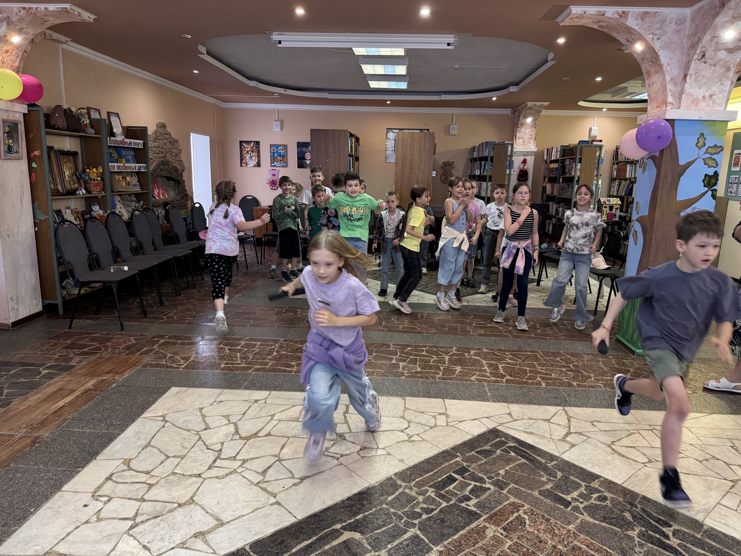 Сегодня состоялось первое мероприятие нашего летнего библиотечного проекта, и прошло оно по-настоящему празднично. Ребятам были предложены разнообразные развлечения: загадки, шарады, физкультминутка, а также подвижные игры «Ступа Бабы-Яги», «Весёлый шарик», конкурсы «Холодно – горячо», «Нарисуй портрет с закрытыми глазами», «Рыбаки», «Водоносы», «Собери витаминки», «Летают не летают», «Бег в обруче» и другие.