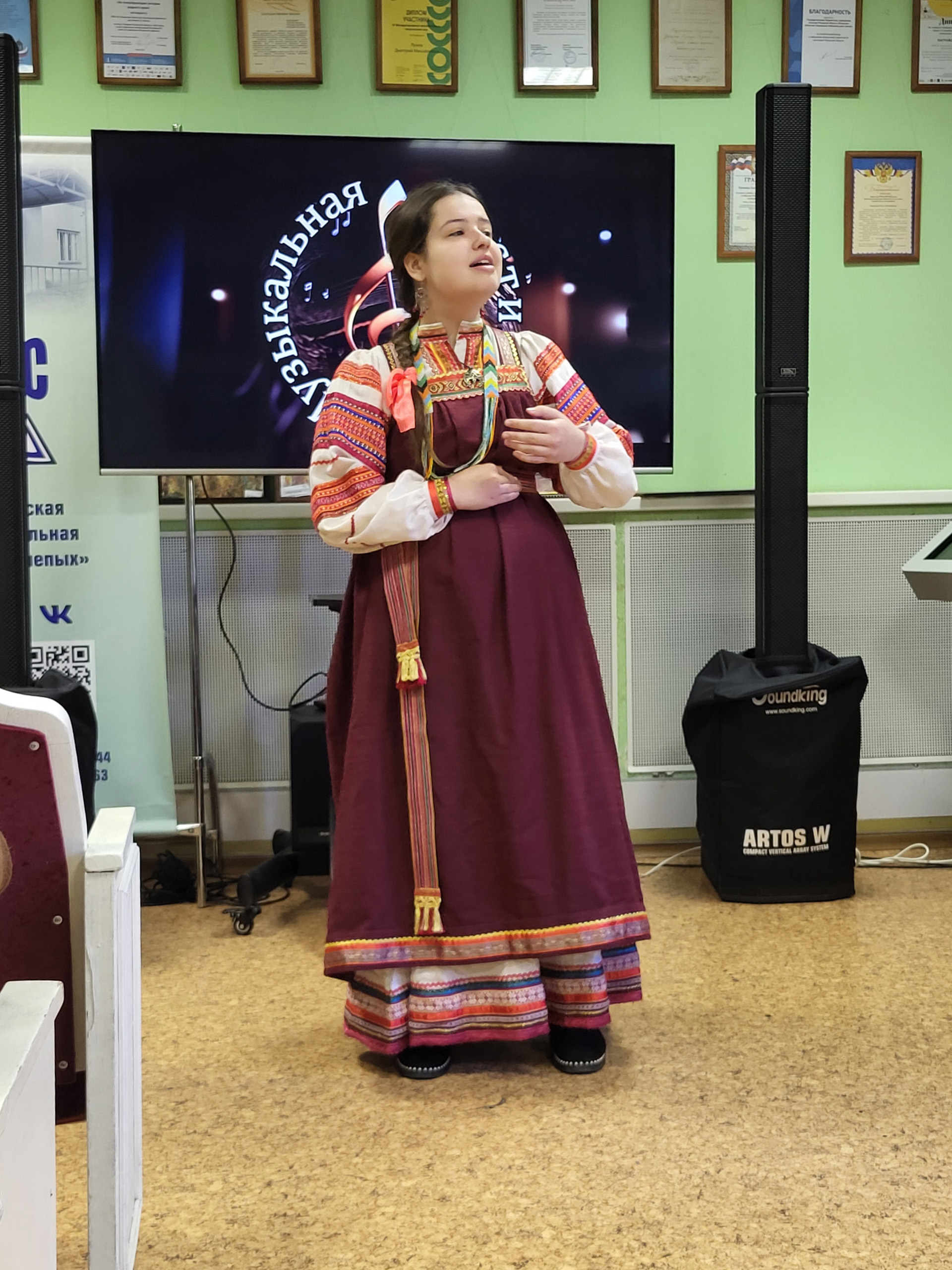 Концерт открыла Валерия Дронова, исполнив вокальную композицию «Мой садик» П.И. Чайковского. Ей аккомпанировала И.А. Алексеева. Затем звучала валторна – Никита Чичилов блестяще справился с этим инструментом. Теплоту и лиричность в зал принесла Ольга Кошелева, исполнив русскую народную песню. Партию фортепиано исполнила И.А. Алексеева. Свое мастерство продемонстрировала Анастасия Савина, сыграв на гитаре произведение «Отцвели хризантемы в саду».