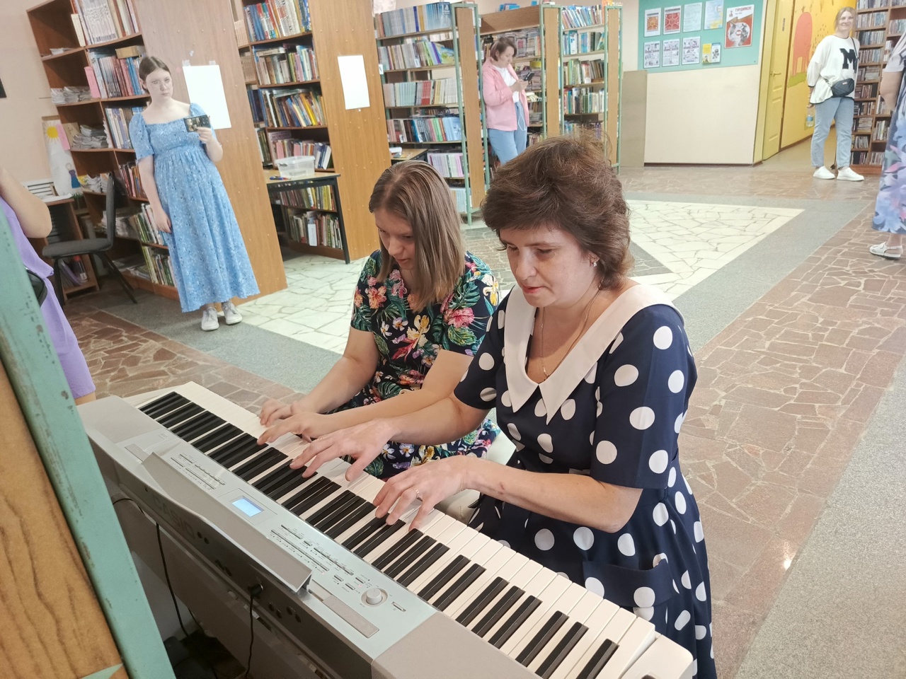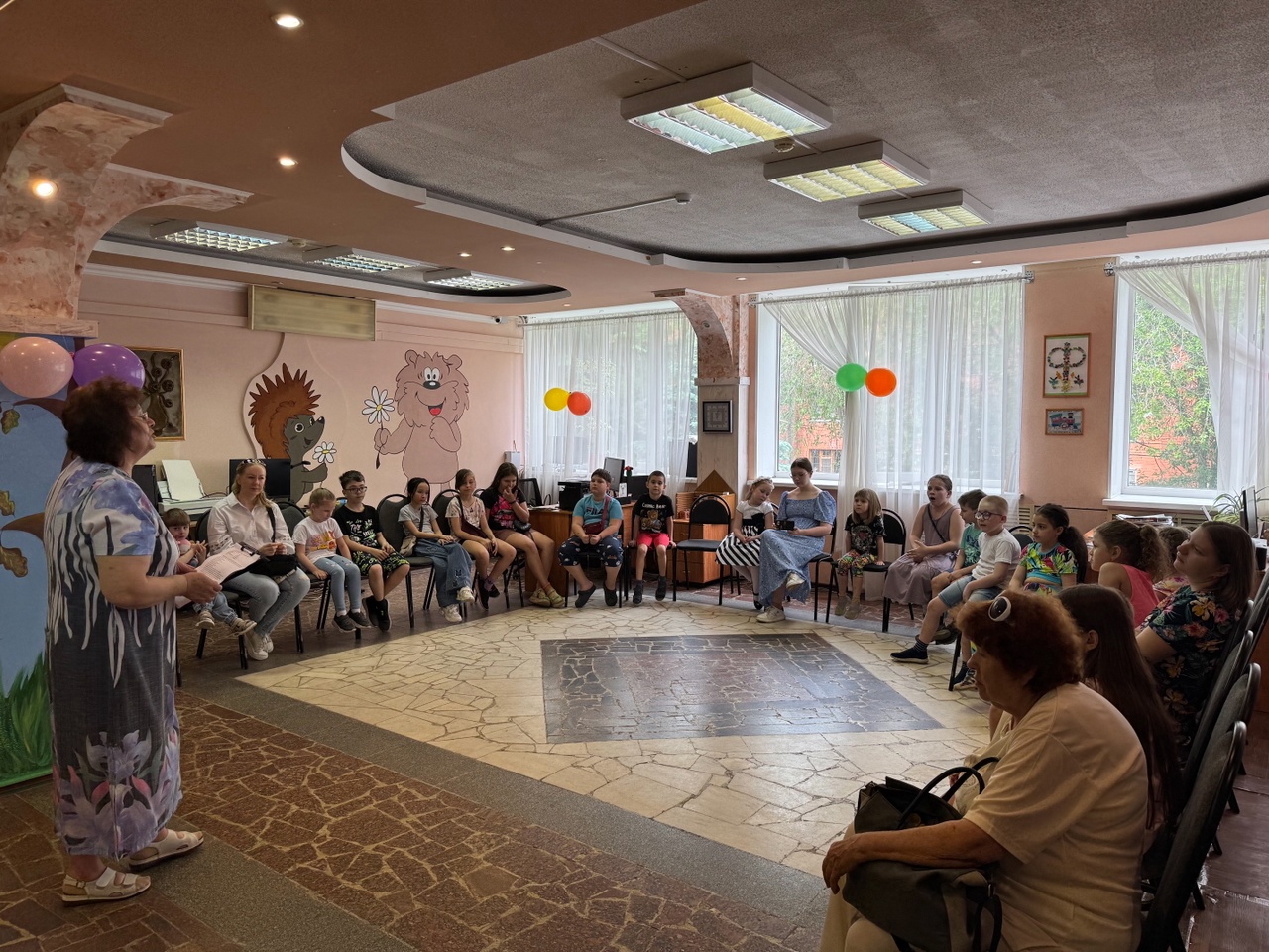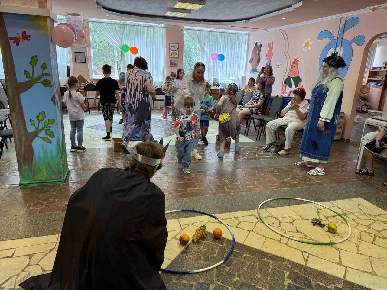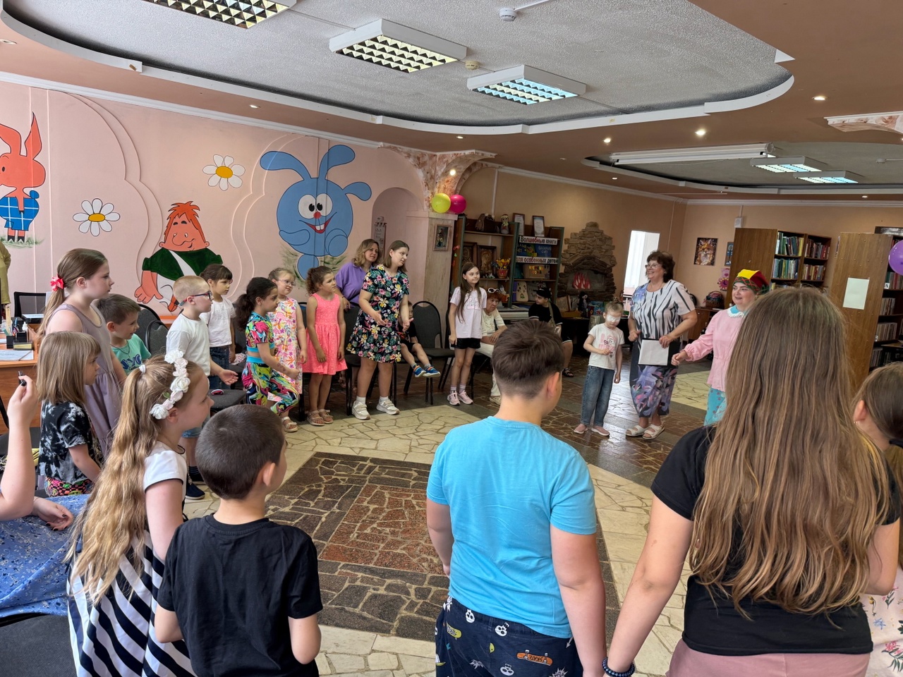 Заведующая детским отделом Валентина Петровна Гусева поздравила детей и их родителей с началом летних каникул, потом ребята встретились с Кащеем, Бабой Ягой, Петрушкой и Летом. Они отгадывали загадки, делали зарядку, участвовали в весёлых конкурсах и эстафетах, пели, танцевали и играли в подвижные игры.