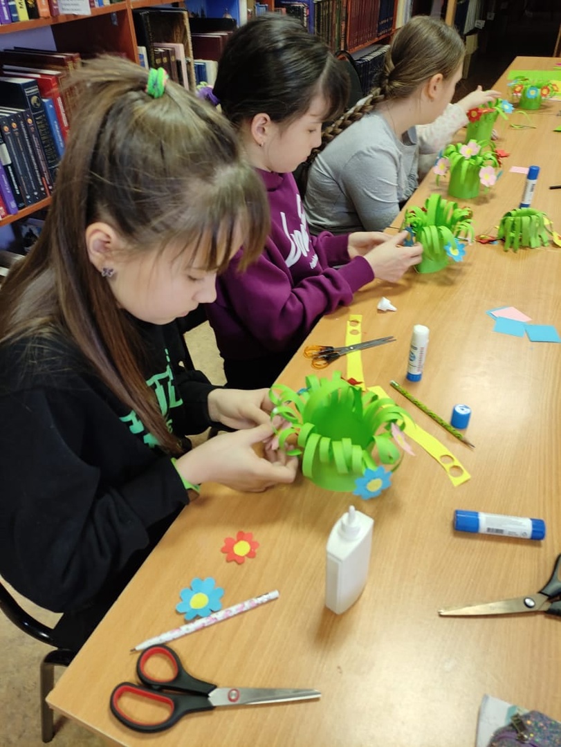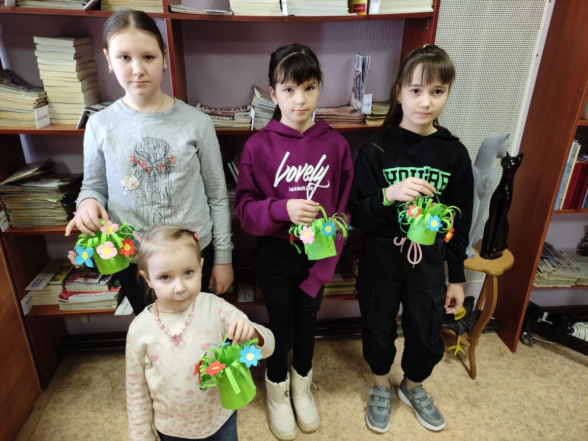На мастер-классе "Цветочная корзиночка" дети сделали своими руками в подарок мамам и бабушкам оригинальные, яркие корзиночки цветов из бумаги.