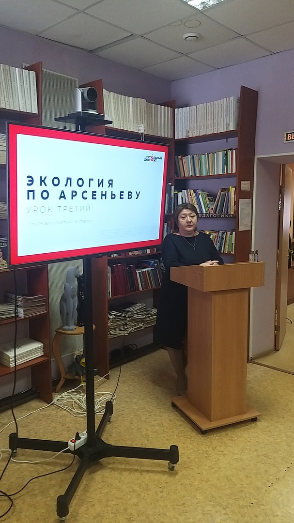 Диктором диктанта на площадке библиотеки для слепых выступила директор библиотеки Ольга Александровна Лунева.