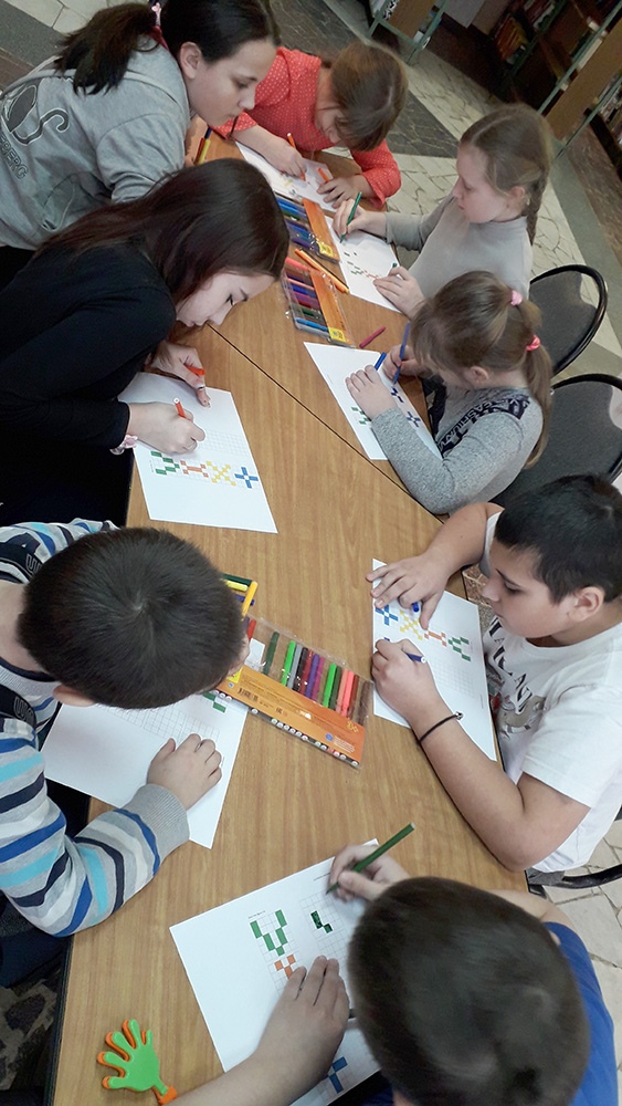 Сначала работники детского отдела побеседовали с детьми о том, что такое ремесло, почему люди стали украшать одежду и предметы быта. Затем ребятам показали презентацию и рассказали о народных промыслах Рязанской области. Большой интерес у ребят вызвали Сапожковская глиняная игрушка, Скопинская керамика, Шиловское лозоплетение, Михайловское кружево и Кадомский вениз. Потом дети под руководством педагога рисовали орнамент по схеме. Мероприятие закончилось традиционным чаепитием.