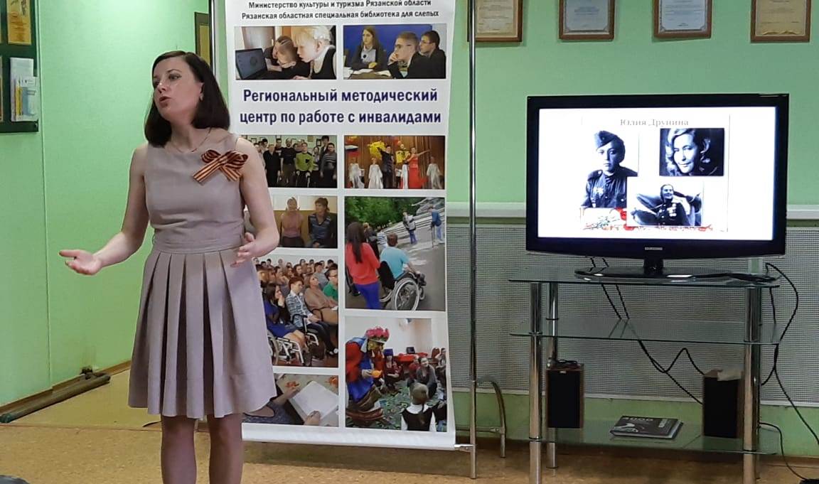 8 мая 2019 года в Рязанской областной специальной библиотеке для слепых прошёл поэтический вечер «Поэзия в военной шинели», посвящённый 95-летию поэтов-фронтовиков Юлии Друниной и Булата Окуджавы, в рамках осуществления проекта «Русский язык – Отечества основа» Открытого грантового конкурса малых грантов «Мы говорим по-русски!» комитета по поощрению социальных, образовательных, информационных, культурных и иных инициатив под эгидой Русской Православной церкви.