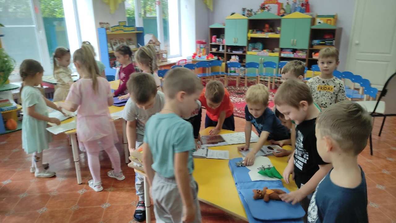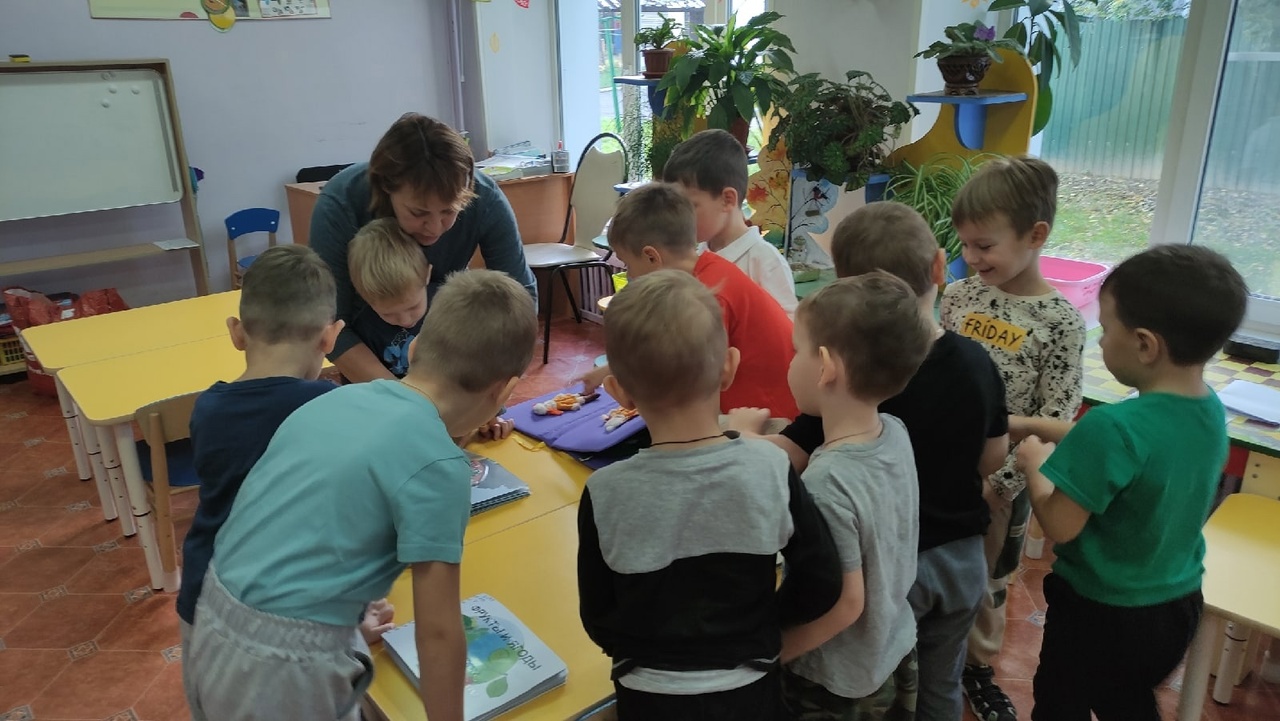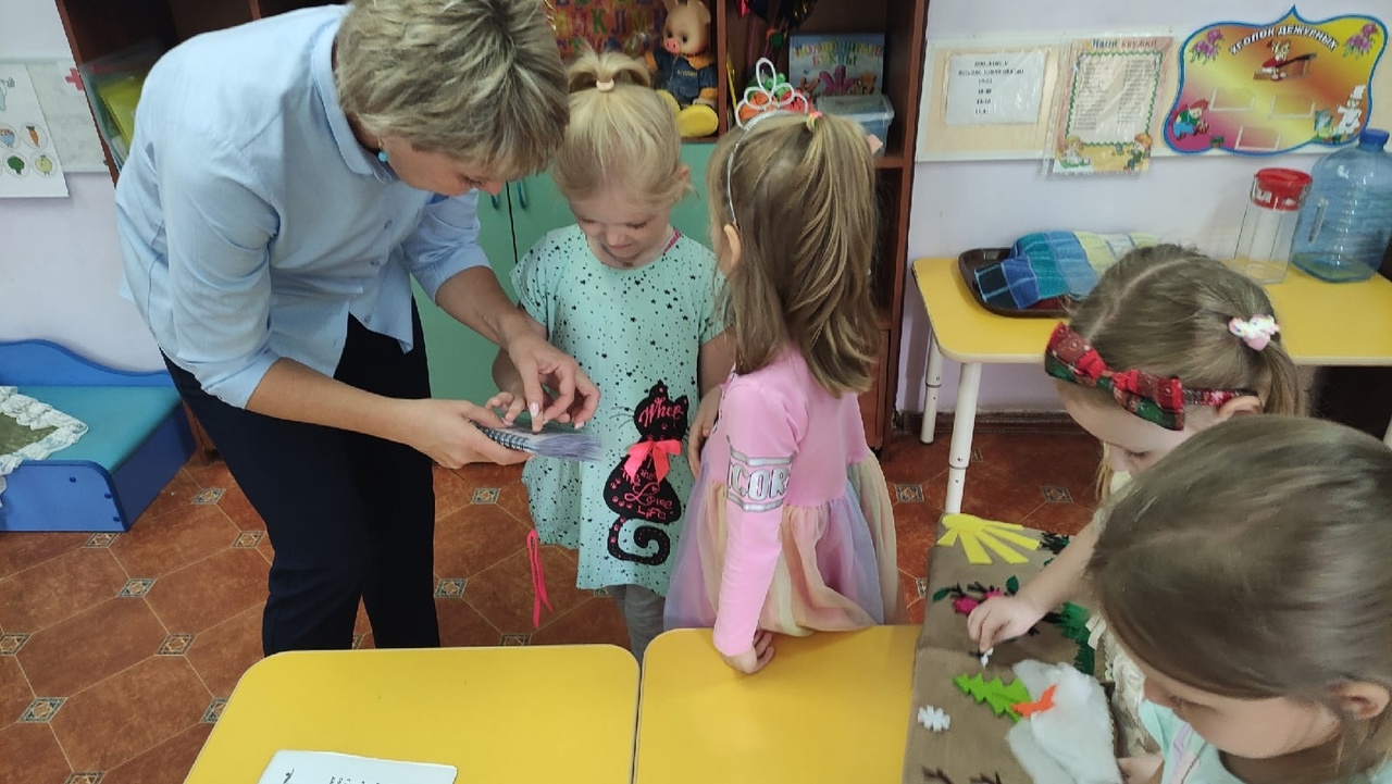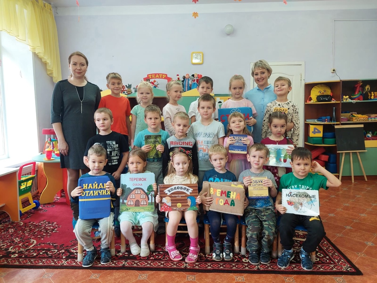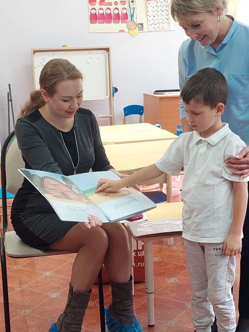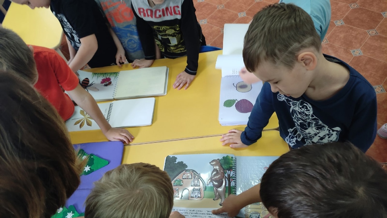 Мальчишки и девчонки познакомились с миром книжной культуры и правилами поведения в библиотеке, узнали, как нужно правильно относиться к книгам. Воспитатели Липатова Мария Анатольевна и Паршикова Светлана Геннадьевна помогли ребятам ознакомиться с рельефно-графическими изданиями: азбукой в картинках, сказками «Теремок» и «Репка», а также с книгами «Насекомые», «Фрукты и овощи» и «Листья деревьев». В таких альбомах крупные изображения выполнены в двух вариантах: яркие плоскопечатные на бумажных страницах и рельефные на пластиковых страницах. Короткие сопроводительные тексты напечатаны укрупнённым плоским шрифтом и продублированы рельефно-точечным шрифтом Брайля.