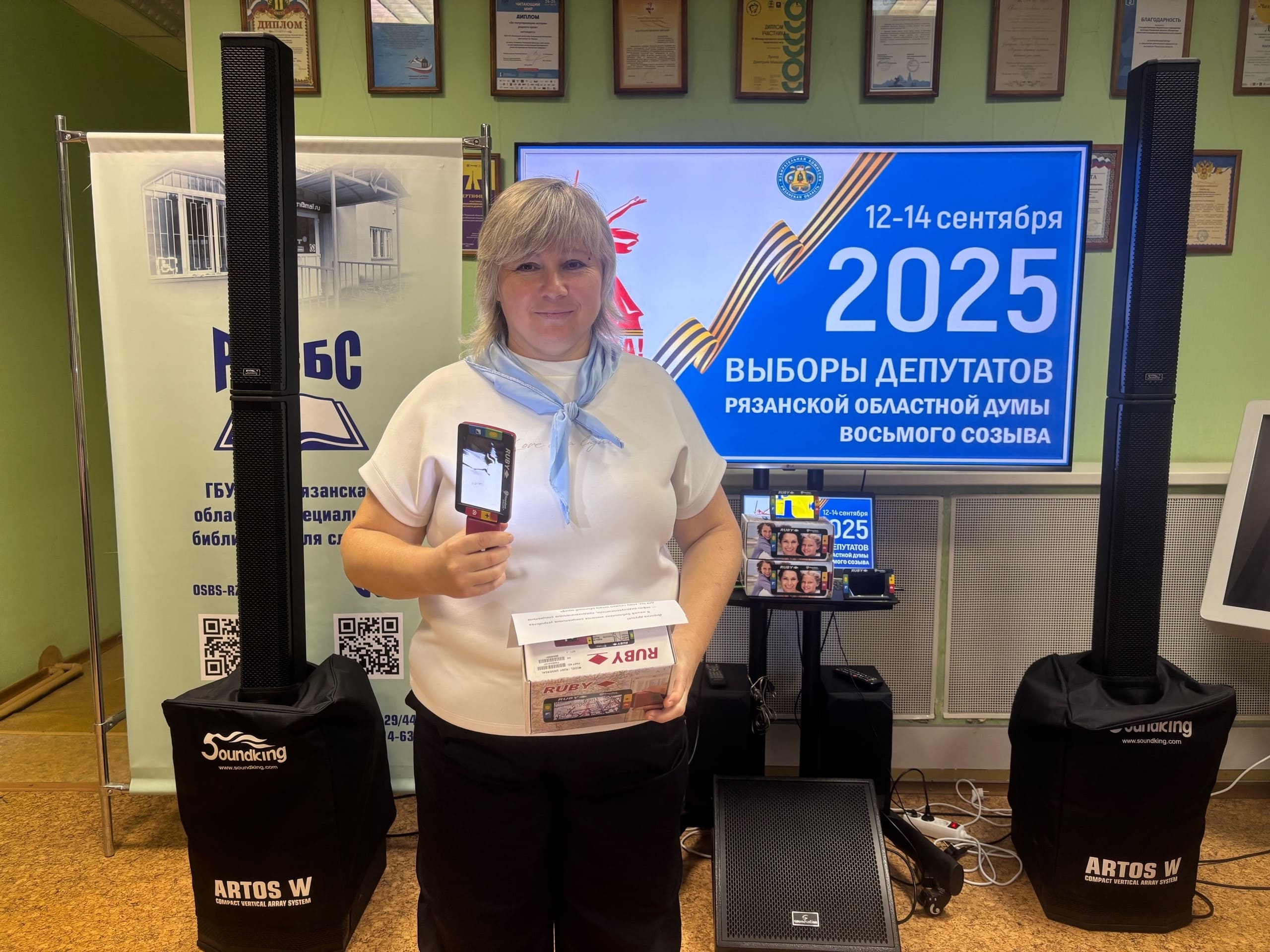 9 сентября 2025 года в Рязанской областной специальной библиотеке для слепых прошла групповая консультация «Применение тифлотехнических средств для чтения материалов по выборам», в рамках проекта «Проводник незрячего избирателя».