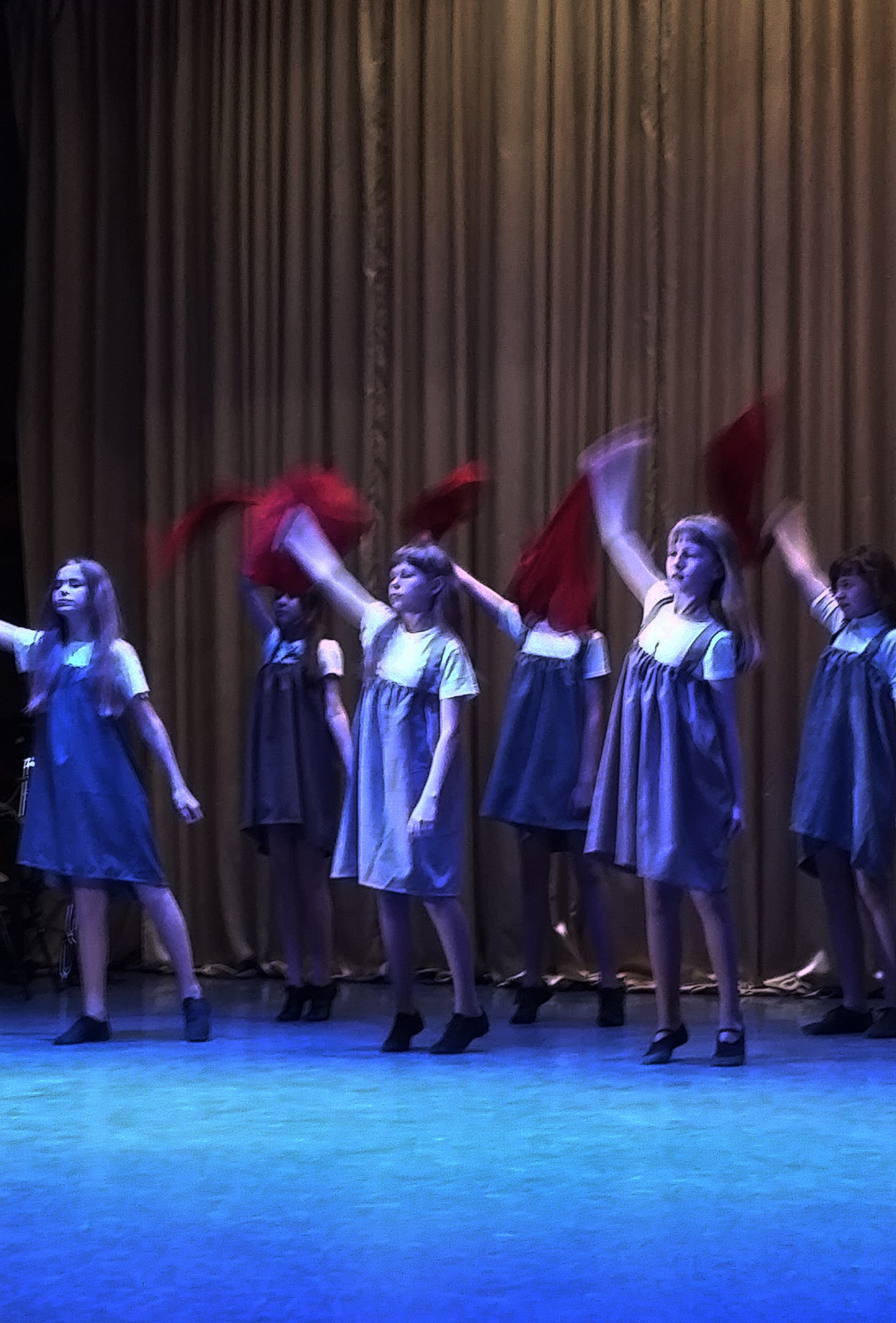 В руках танцующих девочек (школа № 57) в номере «Дети войны» расцвели «алые цветы памяти», вызвав в зале бурные аплодисменты.