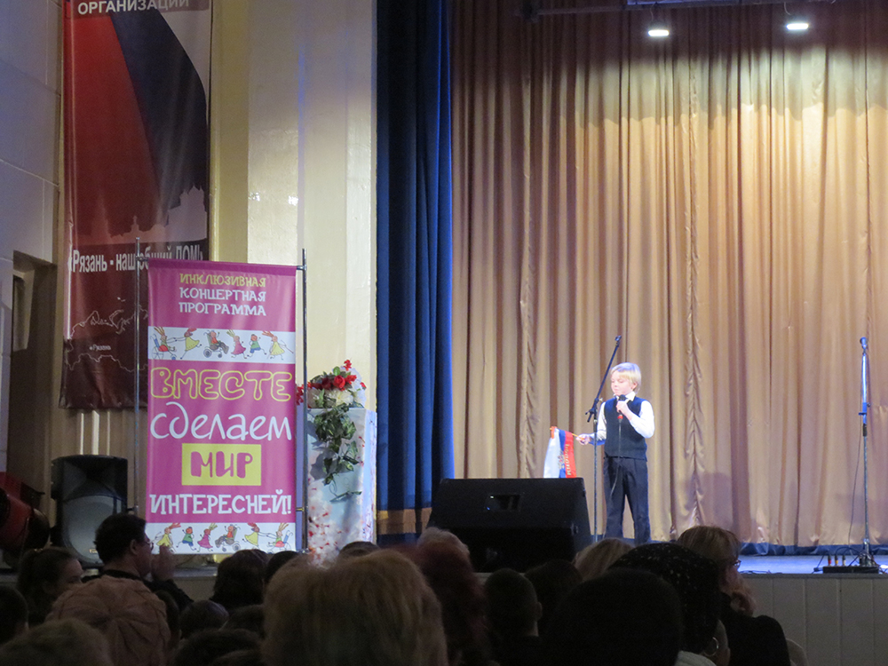 Это мероприятие проводится уже третий год подряд и привлекает новых участников. Лейтмотивом инклюзивной программы стала тема - «Россия». Образ Родины большой и малой прошёл сквозь все номера, которые представили дети и подростки с ограниченными возможностями здоровья из учебных заведений: школы № 10; школы-интерната № 26; Центра образования «Дистанционные технологии»; Рязанской школы-интерната; Городской дворец детского творчества. Поддержали сверстников с проблемами здоровья ребята - учащиеся школ №№ 44 и 57, гимназии № 2.
