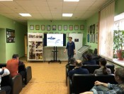 Началось мероприятие с медиалекции «Мелодии звездного пути». Главный библиотекарь Смирнова О.А. рассказала о малоизвестных фактах из жизни Ю.А. Гагарина и об истории создания песен «Родина слышит, Родина знает», «Гимн космонавтов», «Знаете, каким он парнем был» и других.