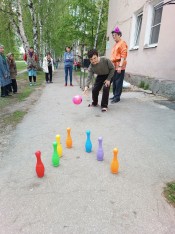 Программа включала в себя разгадывание сказочных загадок, игры с мячом, кеглями и лентами, зарядку под музыку и весёлую дискотеку «Матушка Россия».