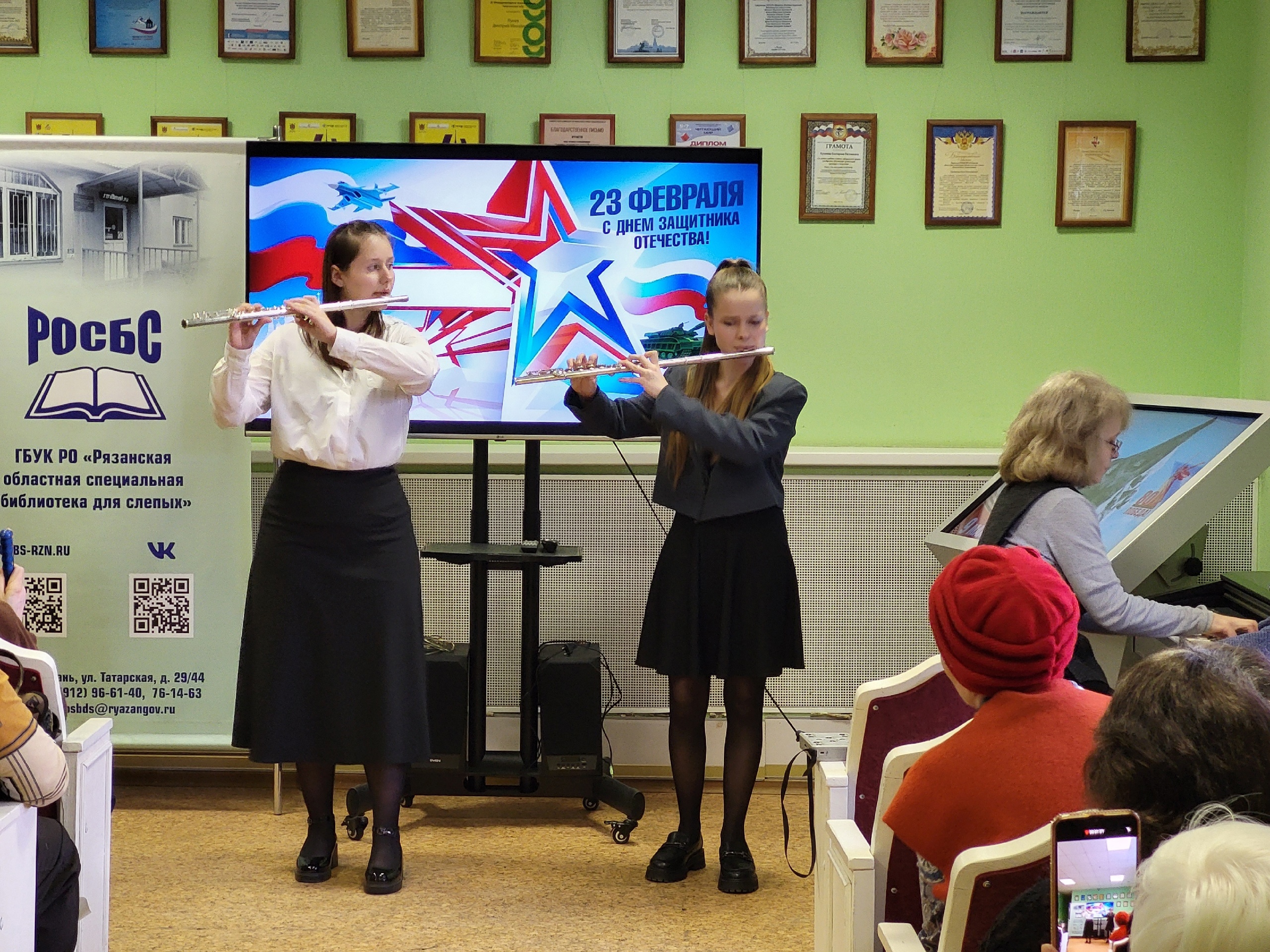 25 февраля 2025 года в нашей библиотеке состоялся замечательный концерт, посвящённый Дню защитника Отечества, подготовленный студентами Рязанского музыкального колледжа им. Г. и А. Пироговых. Программа, озаглавленная «Защитникам Отечества мы славу поем!», поразила слушателей своим разнообразием и высоким исполнительским мастерством.