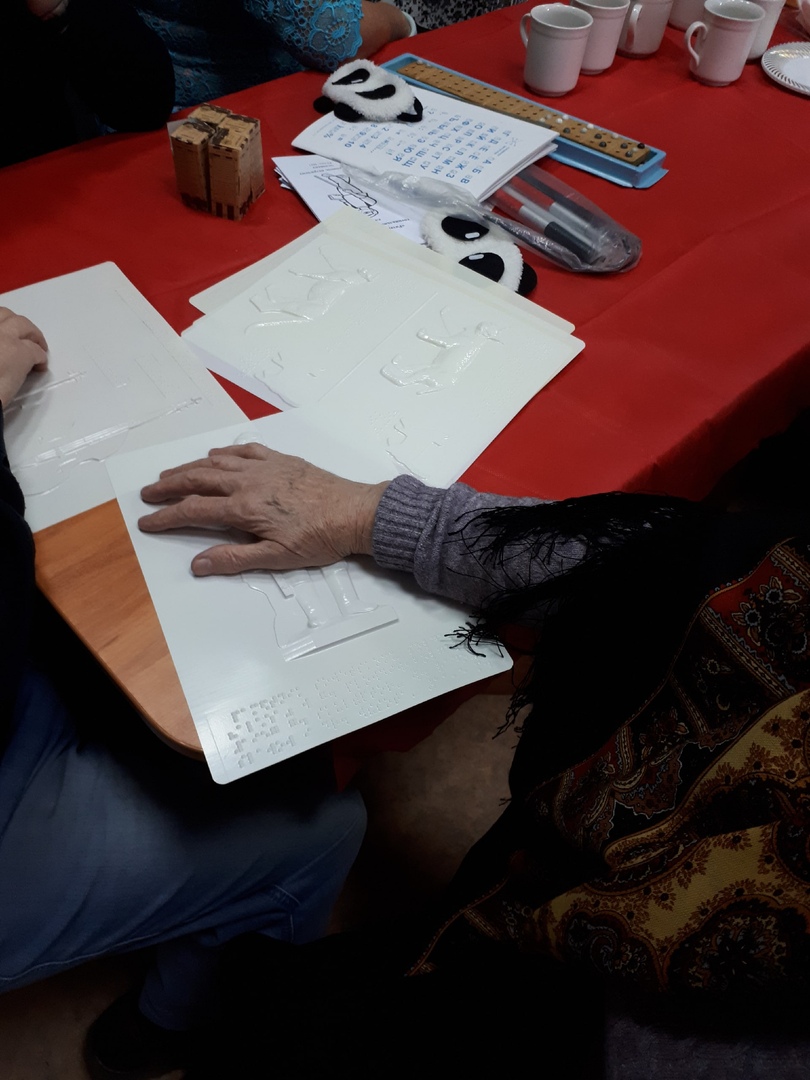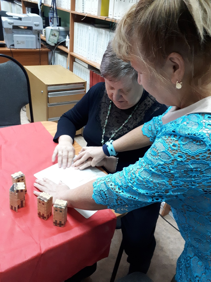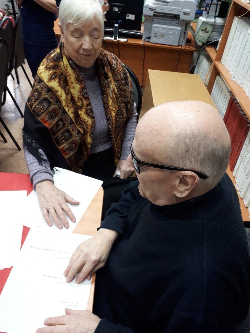 Мероприятие прошло в филиале Рязанской областной специальной библиотек для слепых. Пожилые люди определяли рельефно-графические картинки на ощупь, с помощью саше – различали запахи, знакомились с азбукой Луи Брайля. Помогала им серебряный волонтер Ирина Дмитриевна Фролова. Квест прошел в тёплой, дружественной атмосфере.