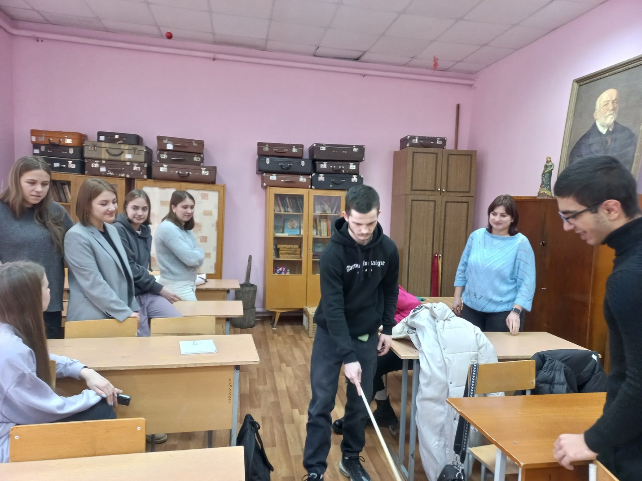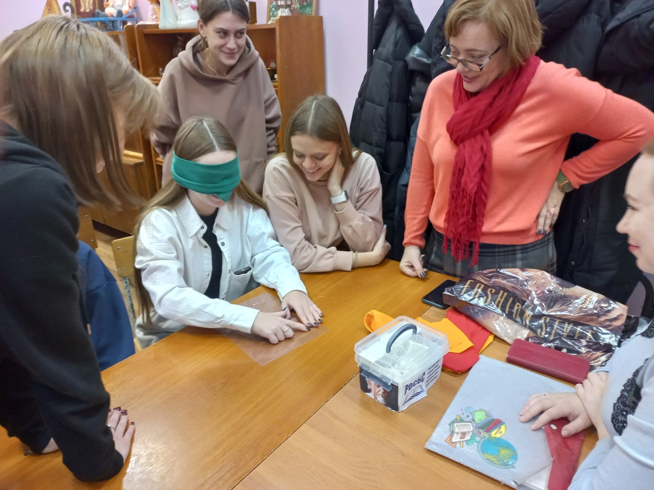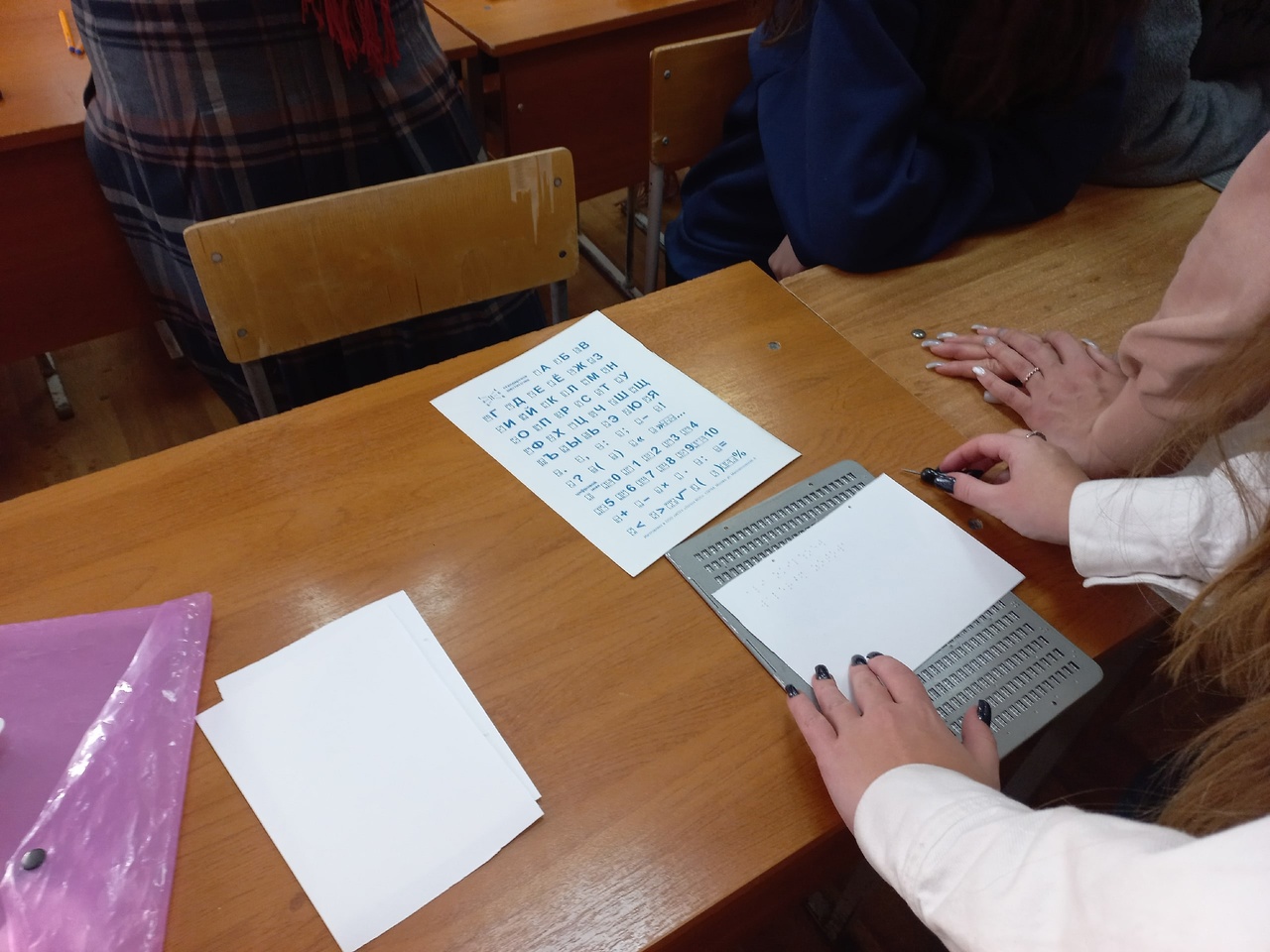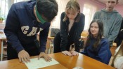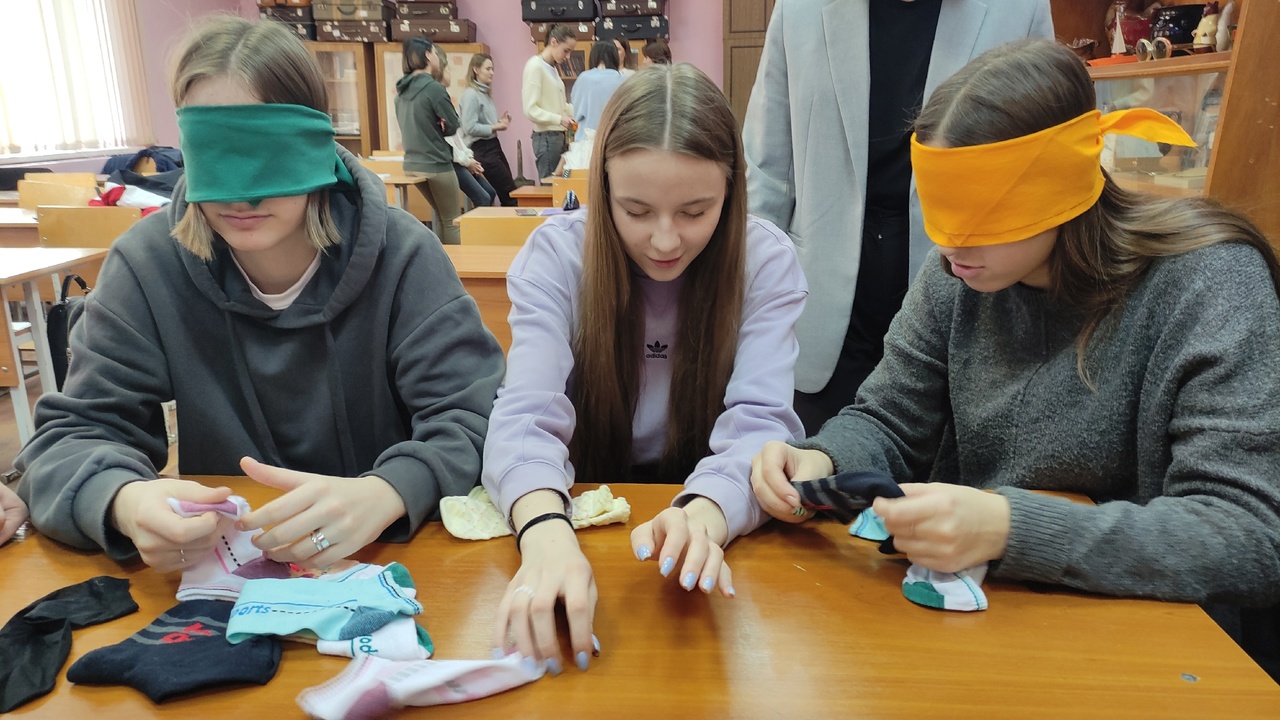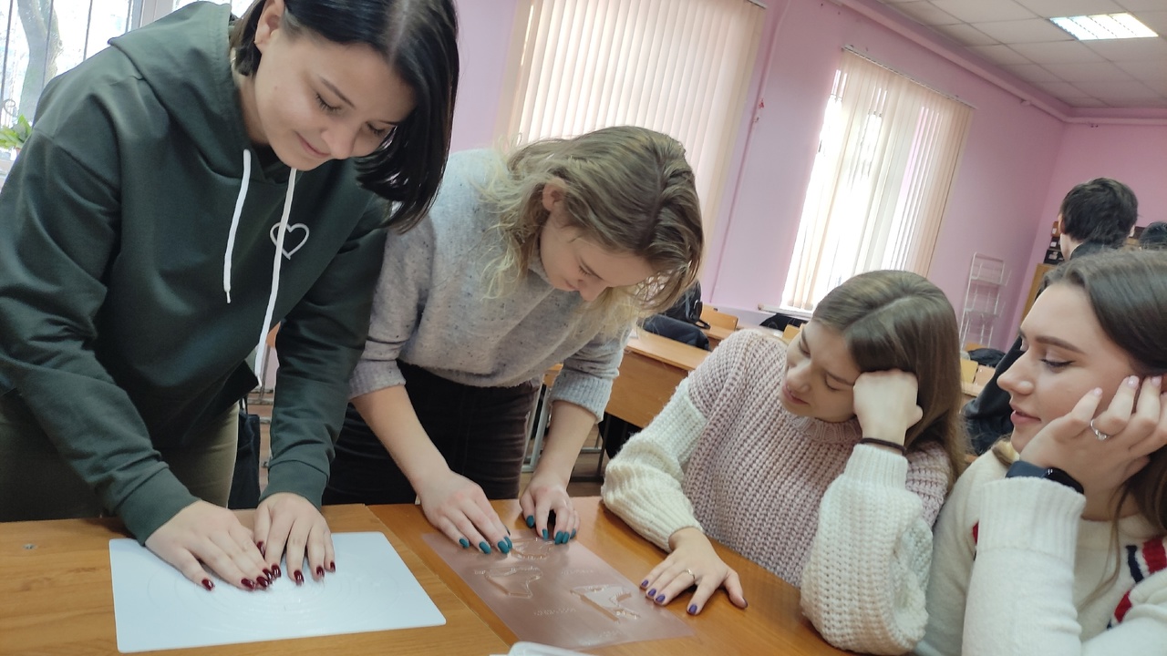 Студенты погрузились в мир незрячего человека: писали шрифтом Брайля, пробовали с закрытыми глазами найти пару носков, угадать рельефно-графическую картину и ходили с закрытыми глазами с помощью трости. Кроме того сотрудники библиотеки рассказали, как правильно предложить помощь человеку с инвалидностью по зрению и оказать её.