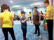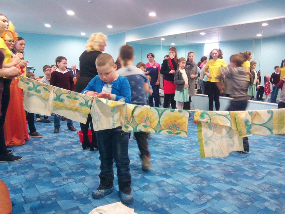 В гости к ребятам пришли лесные звери (медведь, белки, зайцы) и Солнышко, которые поздравили мам, бабушек, девочек с наступающим праздником, показали театрализованное представление по сказке С. Прокофьевой «Сказка про маму», провели эстафеты, конкурсы, игры. Дети играли в кричалки, отгадывали загадки, соревновались в развешивании белья на верёвке, собирали мозаику. Завершилась программа весёлой дискотекой с шариками, затем ребята получили сладкие подарки от Центра социальной реабилитации инвалидов и фломастеры от волонтёров школы № 73.