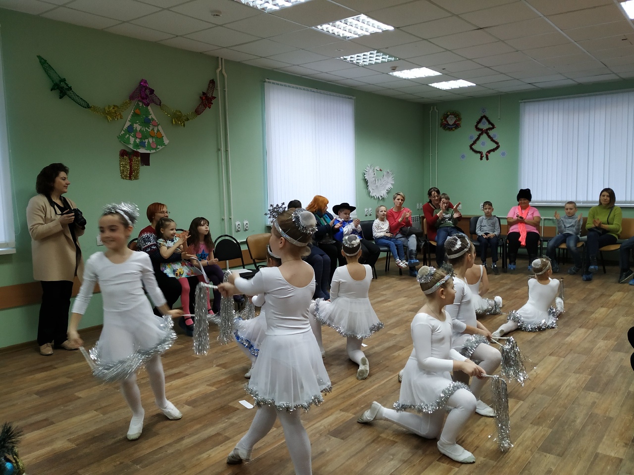 Детишки младшего возраста совершили путешествие по сказочным станциям, где встретились с Зимой, Медведем, Лисой, Зайцем и Лешим. Зрители увидели танец «Снежинки» в исполнении танцевального коллектива «Переменка» школы № 73.