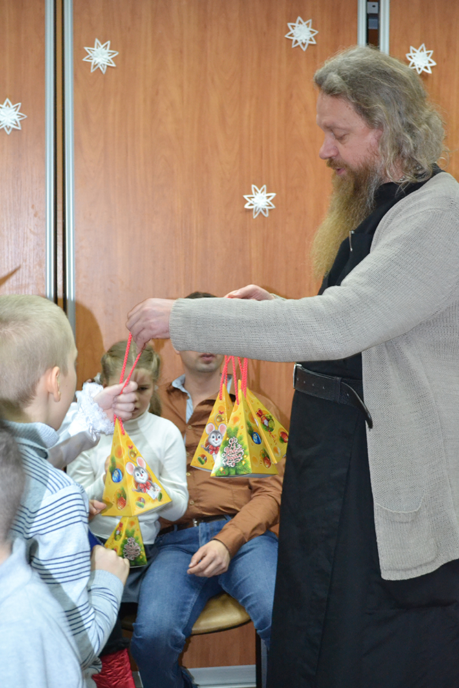В завершении праздника детей и родителей поприветствовал настоятель Спасо-Преображенского Пронского мужского монастыря, кандидат исторических наук, писатель, публицист, телевизионный ведущий игумен Лука, который подарил всем ребятишкам подарки. Дед Мороз и Снегурочка тоже подарили участникам мероприятия книги-раскраски и небольшие сладкие подарки.