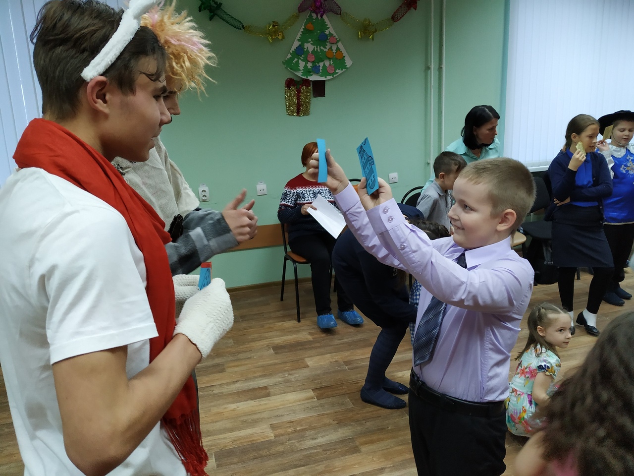 20 декабря 2019 года сотрудники Регионального методического центра по работе с инвалидами с помощью волонтёрского отряда 9 «В» школы № 44 провели литературно-игровую программу «Новогодний паровозик» для детей с ограниченными возможностями здоровья из Центра социальной реабилитации инвалидов.