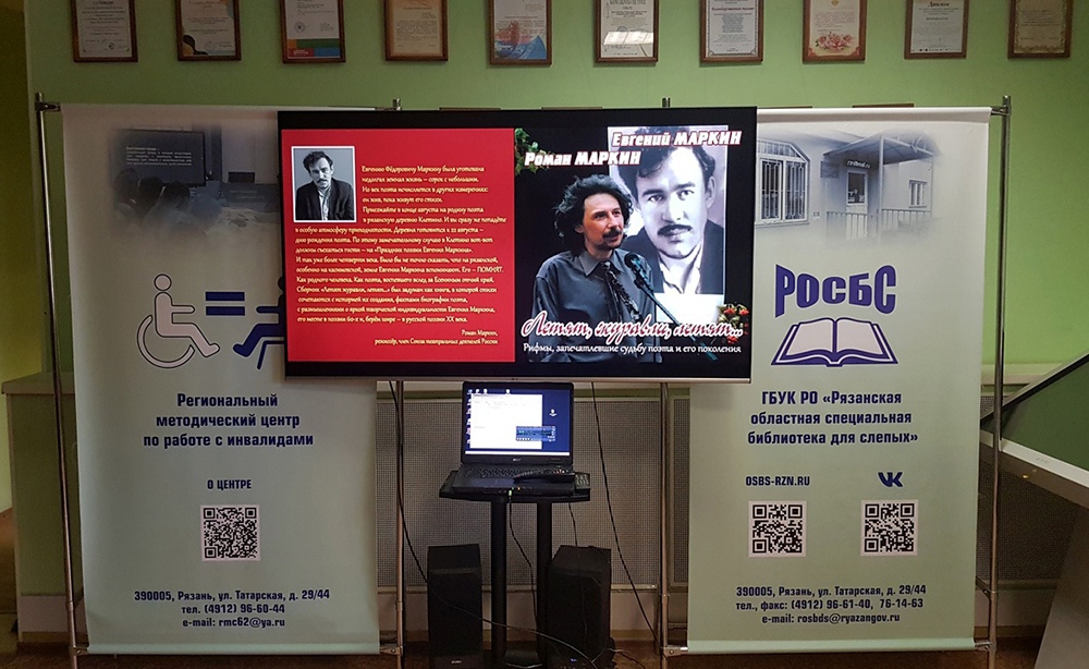 Рязанская областная специальная библиотека для слепых активно популяризирует творчество рязанских авторов. Ежегодно в студии звукозаписи записывается до 30 экземпляров «говорящих» книг. Это единственная возможность познакомить наших читателей с известными людьми, творящими и творившими на Рязанской земле.