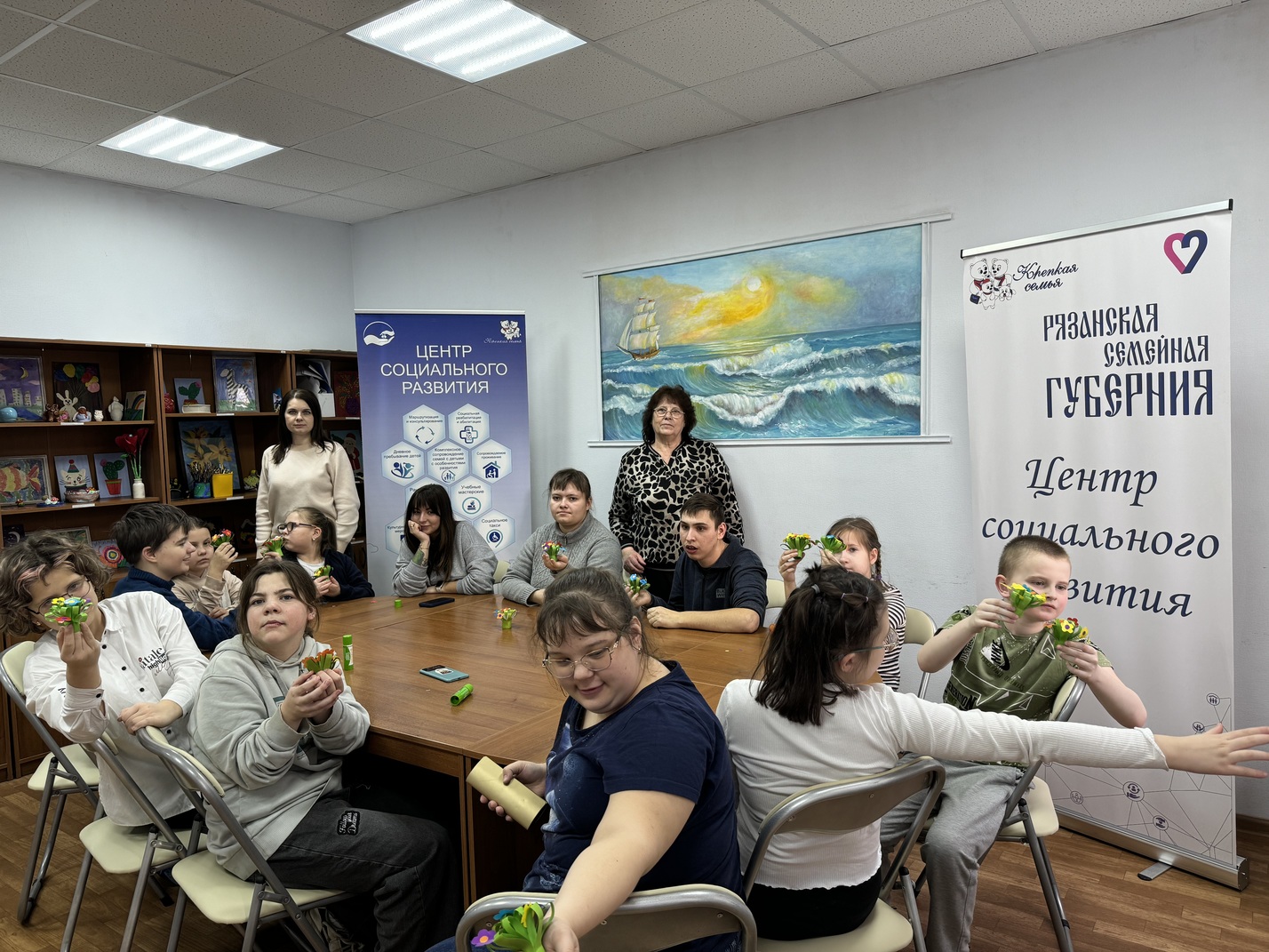 5 марта 2025 года сотрудники детского отдела Рязанской областной специальной библиотеки для слепых провели в «Центре социального развития» мастер-класс «Букет для мамы».