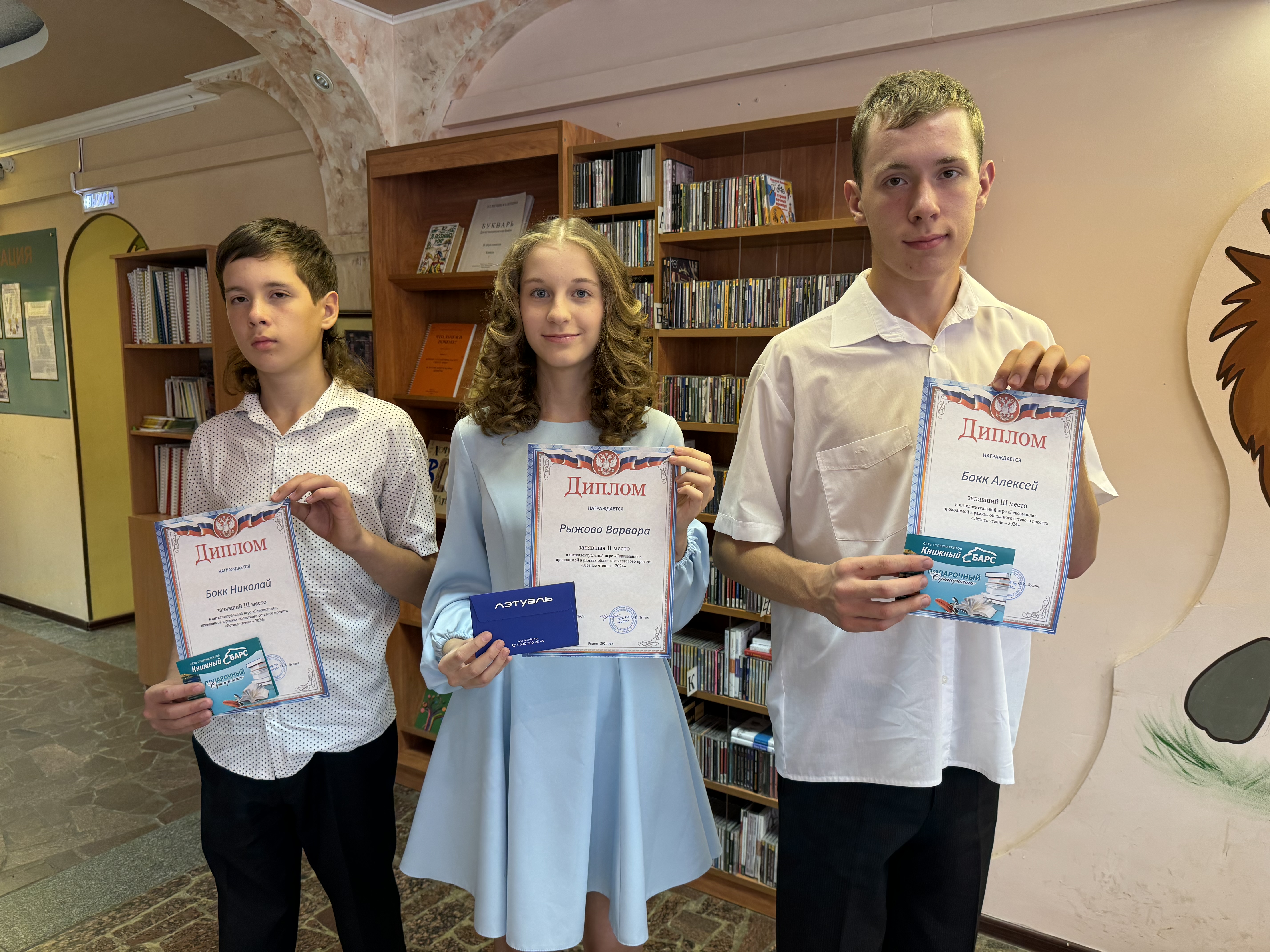 Ещё трое участников интеллектуальной игры «Гексомания» – Варвара Рыжова (школа №16), Алексей Бокк (лицей №52) и Николай Бокк (лицей №52), занявшие II и III место, были награждены директором Рязанской областной специальной библиотеки для слепых Ольгой Александровной Лунёвой. Она от души поздравила наших юных читателей, пожелала им никогда не расставаться с книгой и занимать активную жизненную позицию. Ребятам вручили ценные подарки.
