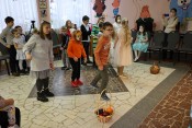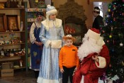 В конце праздника Дед Мороз вручил всем новогодние подарки, а затем ребята фотографировались возле нарядной ёлки с Дедом Морозом, Снегурочкой, Лесовичком, котом Матвеем, Бабой Ягой, Кащеем, Кикиморой и разбойниками.
