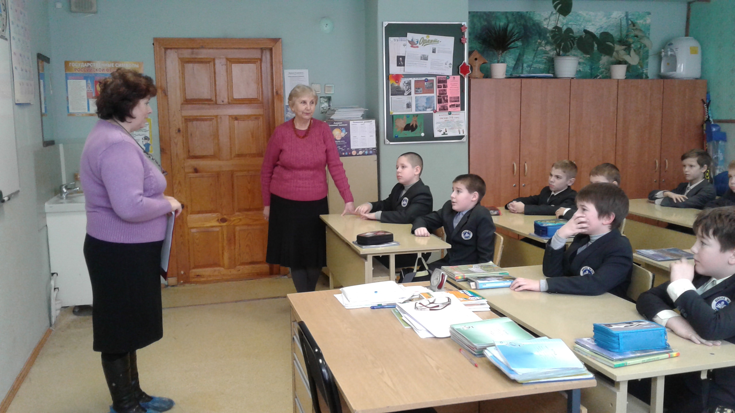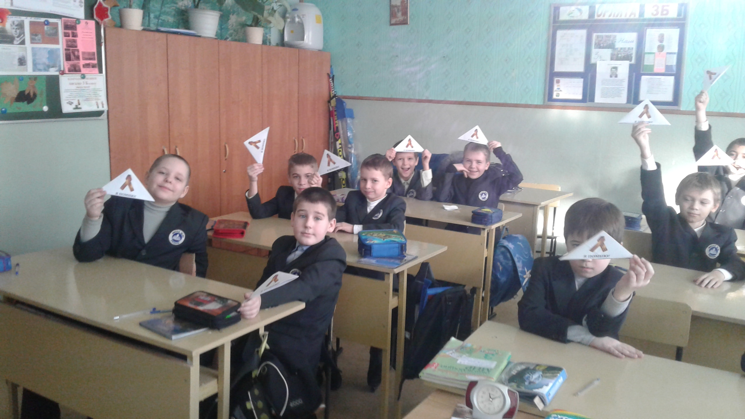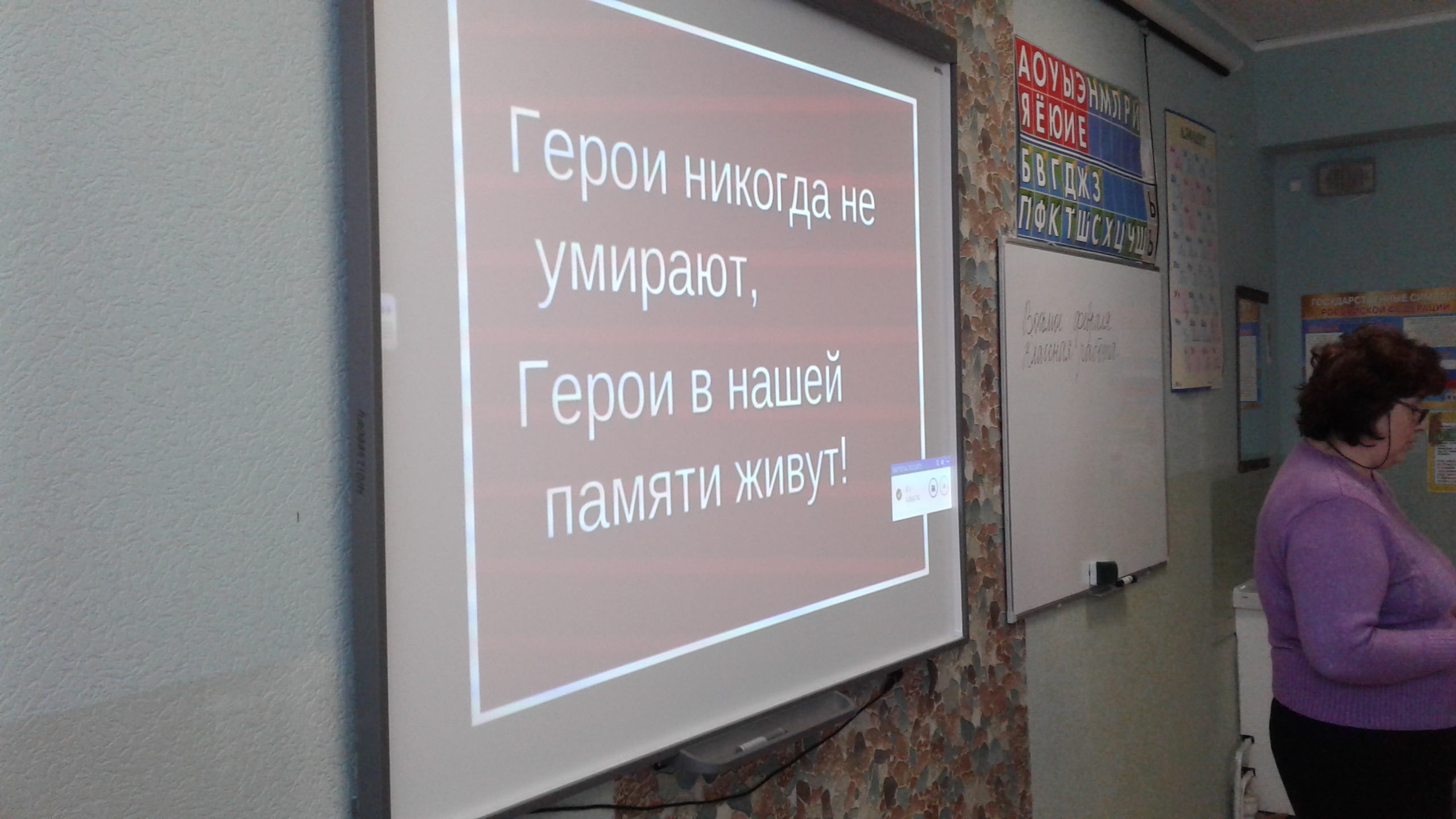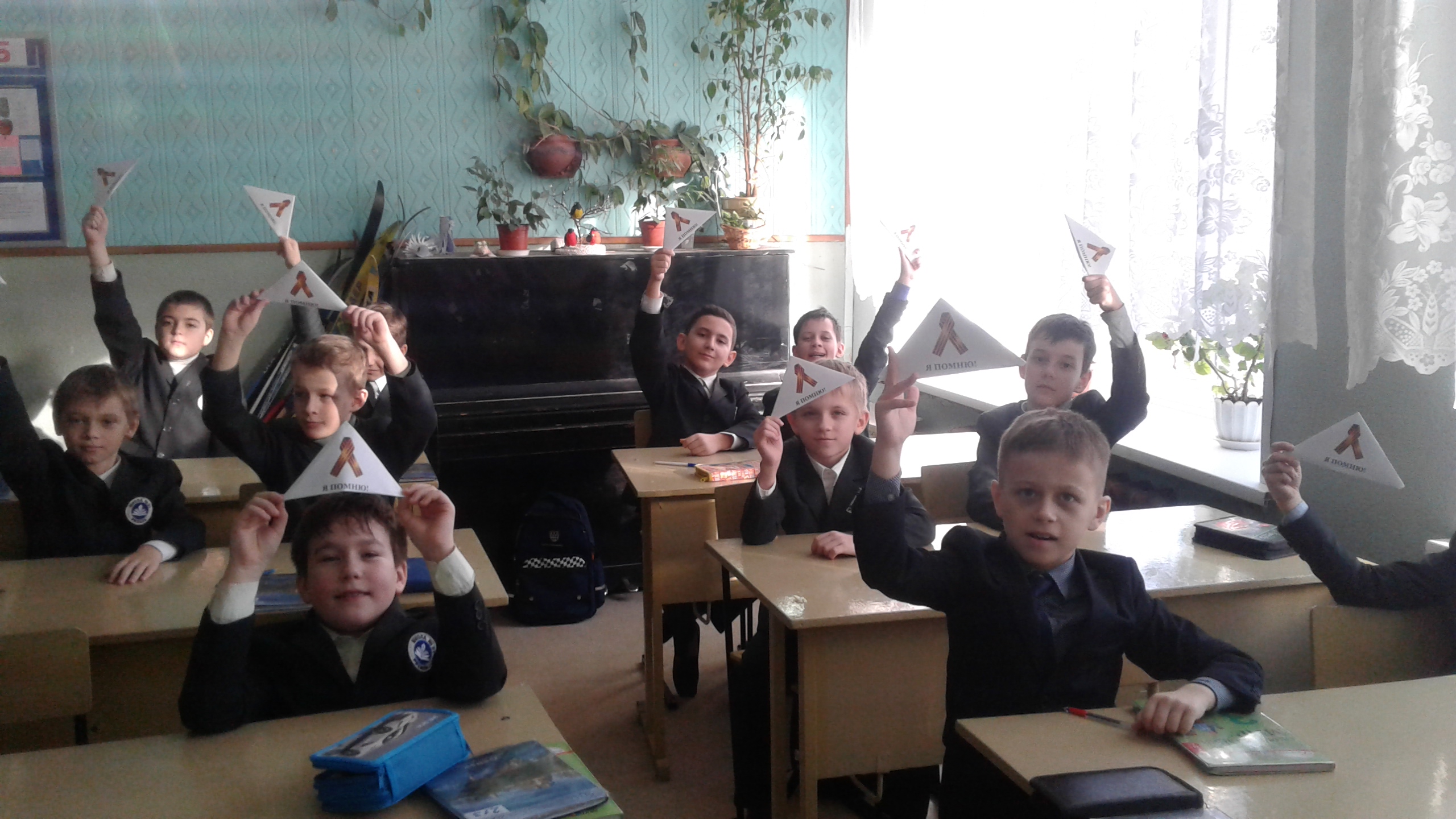 Беседа сопровождалась просмотром презентации. Третьеклассник Дима Елисеев прочитал своим друзьям небольшое сообщение о своём прадедушке, вывезенном фашистами в Германию, проведшем в концлагере 4 страшных года и чудом избежавшем расстрела. Только так, храня память о наших героических дедах и прадедах, мы сможем предотвратить новую войну.