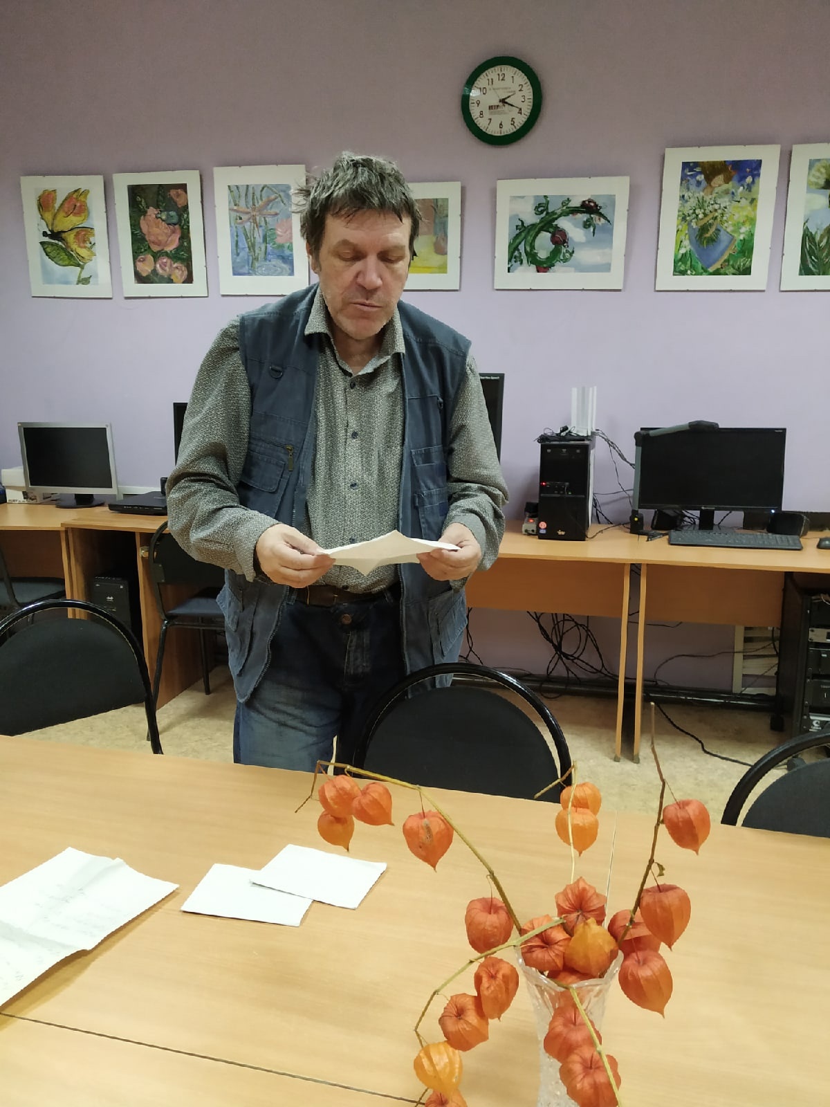 Домашним заданием было продолжить стихотворение, которое начинается так: «Догорает осень рыжим пламенем…» Члены кружка представили на суд товарищей свои произведения. Все вместе оценили их, отметили положительные стороны и недостатки, назвали лучшее произведение. Им, по общему мнению, оказалось стихотворение Евгении Поповой. Своё профессиональное слово сказал Николай Васильевич, дал советы.