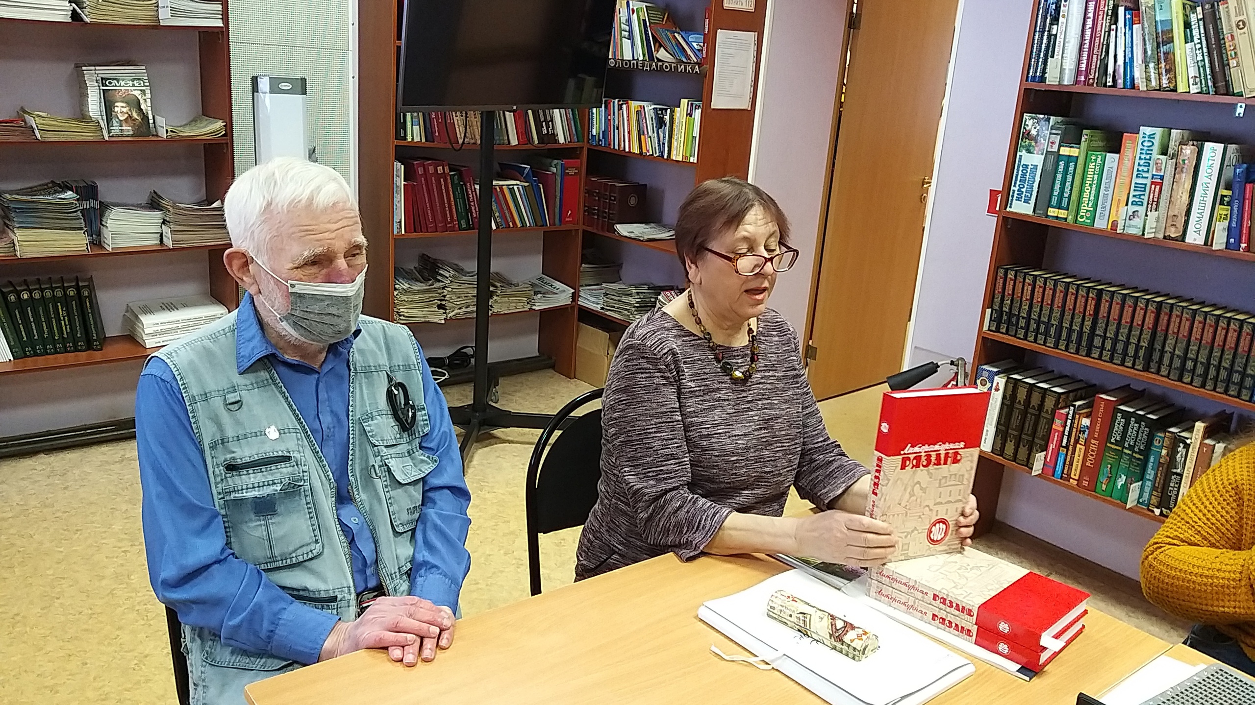 Занятие началось с поздравлений. Стихотворения нескольких участников кружка были напечатаны в альманахе «Литературная Рязань» за 2022 год – это Алёна Гриценко, Виктор Кунашев, Евгения Попова, Любовь Медведева, Ольга Колевид. Отличившимся вручили по экземпляру альманаха, все от души порадовались друг за друга.