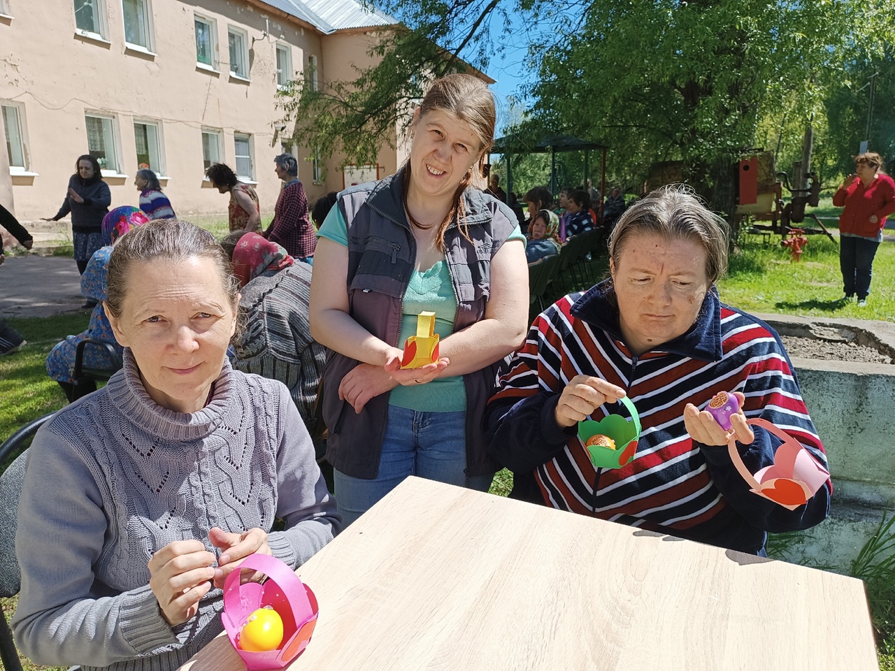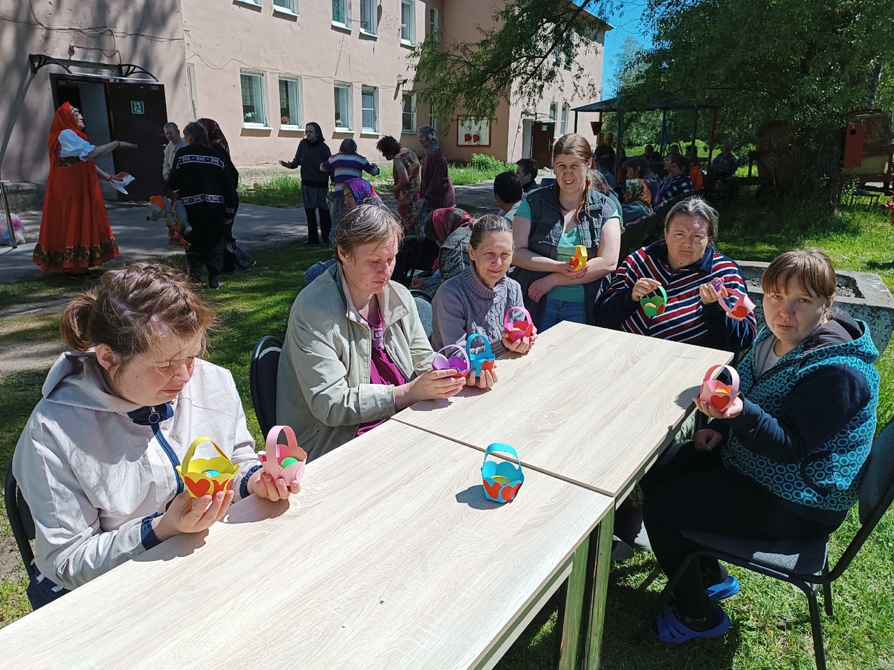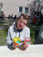 От Пасхи до Вознесения славят люди светлый праздник Воскресения Христова. Сотрудники библиотеки присоединились к этой традиции, посетив Ухорский ПНИ Спасского района, с которым их связывают многолетние отношения. Они привезли программу «Пасхальная радость», подготовленную специально для проживающих в интернате. В неё вошли музыкально-игровая программа и мастер-класс.