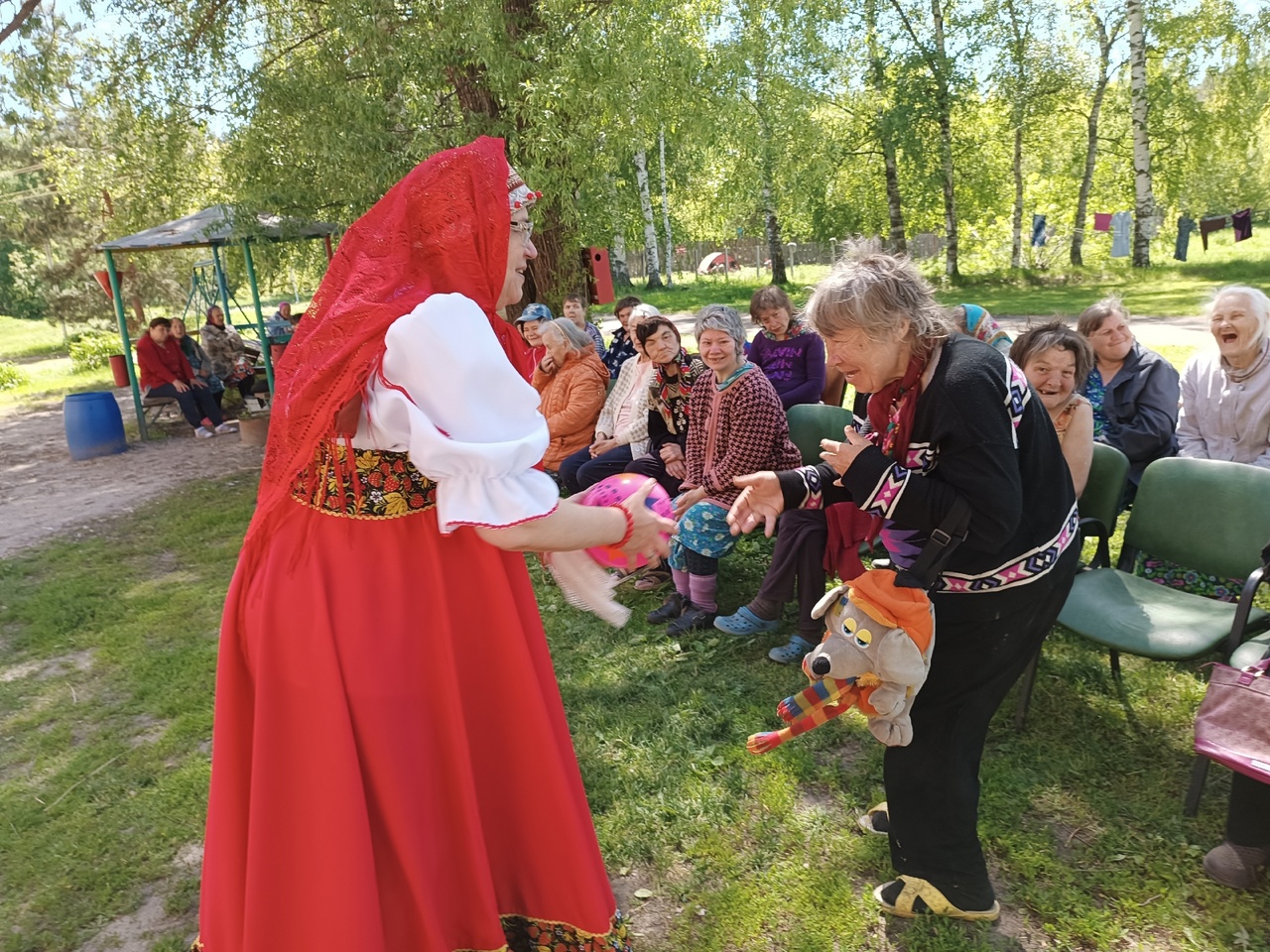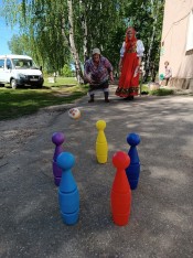 Музыкально-игровая программа состояла народных игр «Тетёра», «У дядюшки Трифона», «Маленича», «Дуга». Помимо этого, проживающие в ПНИ пели народные песни и водили хоровод. Эту часть программы подготовили сотрудники Регионального методического центра по работе с инвалидами.