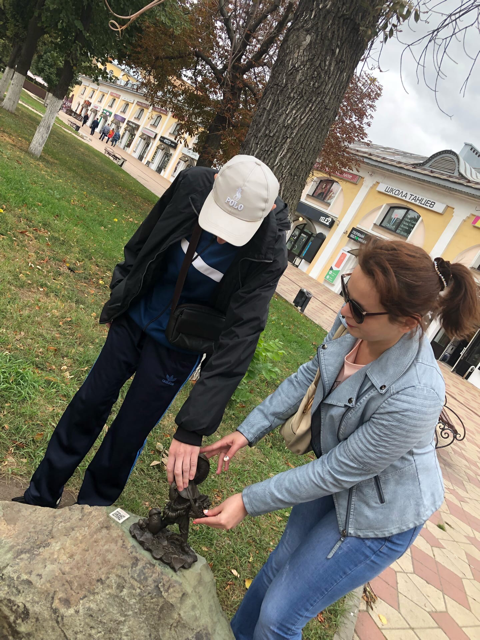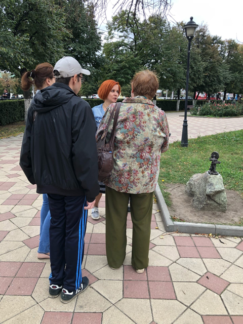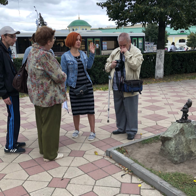 Весной 2021 года в разных точках исторического центра города были установлены мини-скульптуры, авторами которых являются рязанские мастера – Полина и Василий Горбуновы. Размер и расположение скульптур доступны для тактильного восприятия незрячими людьми, а мелкие элементы не отвлекают от понимания целостности образа. Этот факт вызвал неподдельный интерес у участников экскурсии.